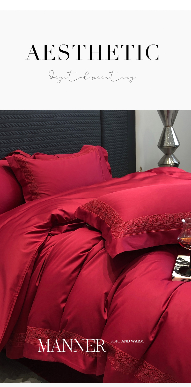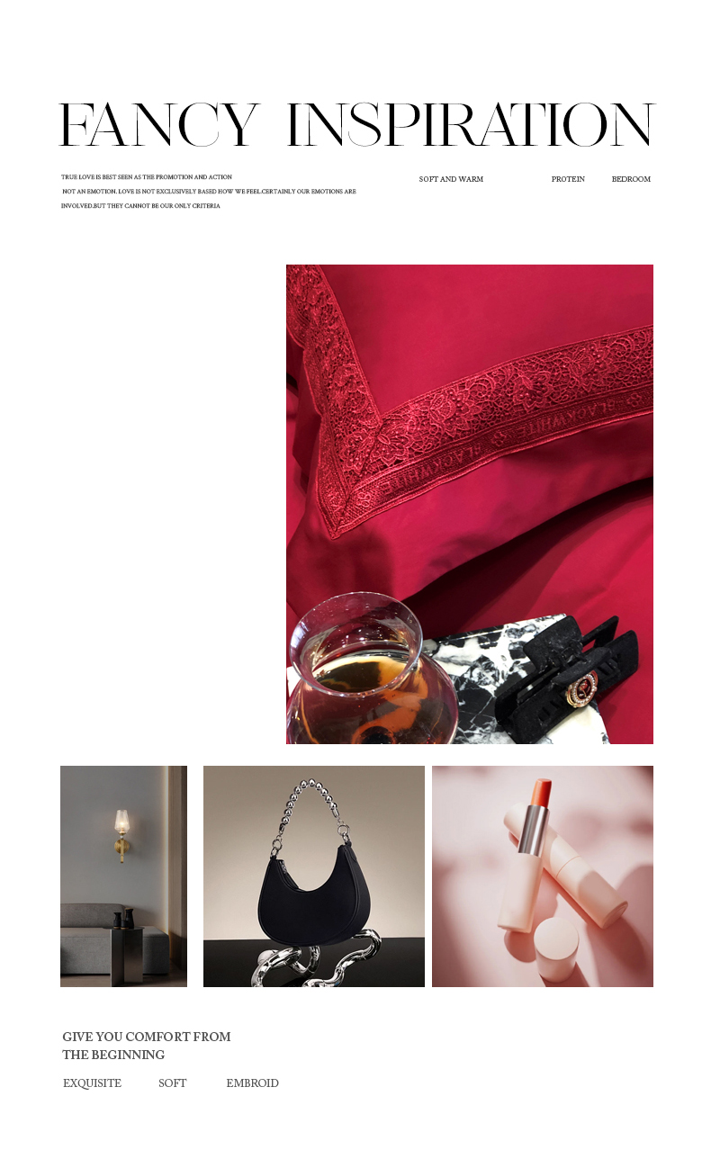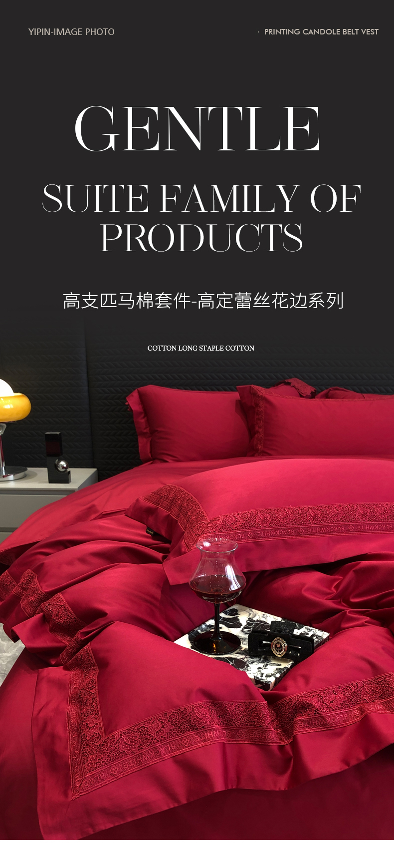 商品名称:黑白森林 2026新款匹马棉高定蕾丝大红系列 弗兰纳