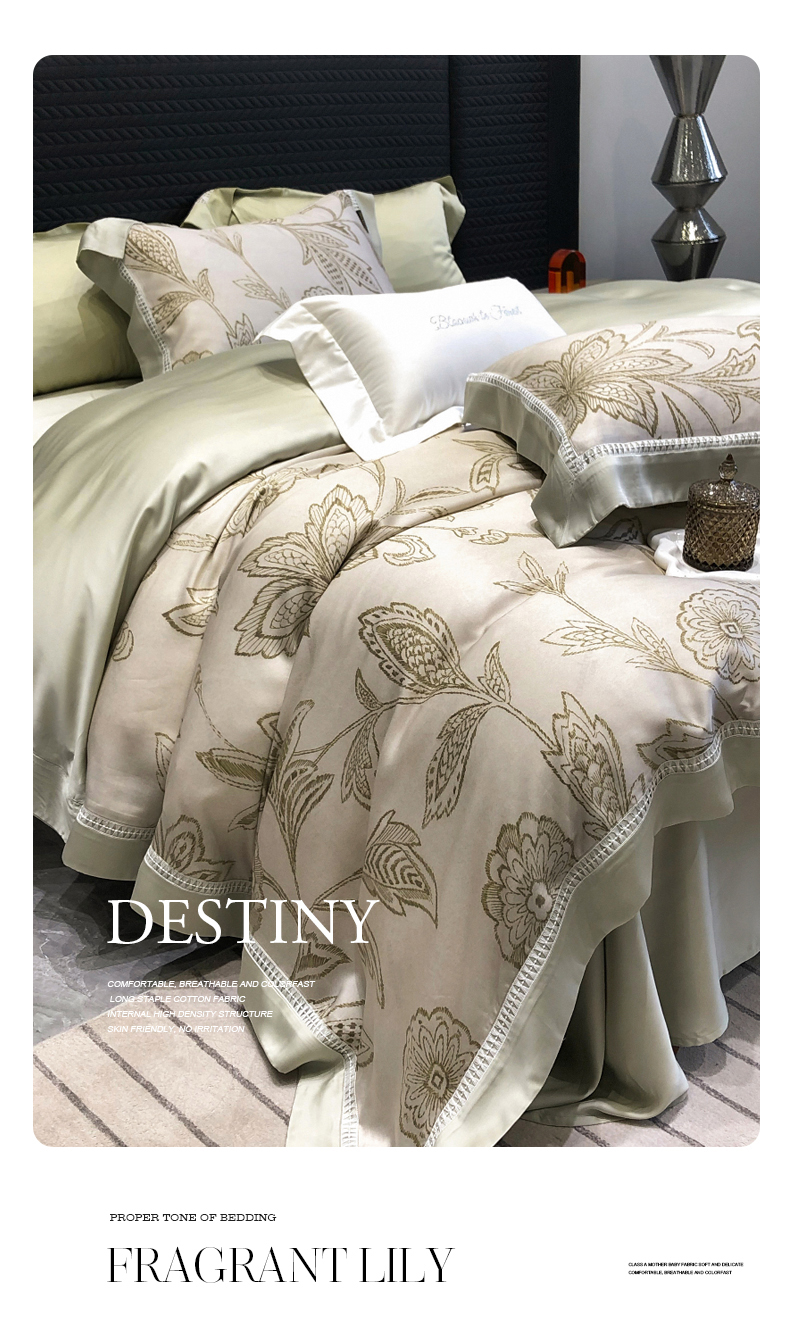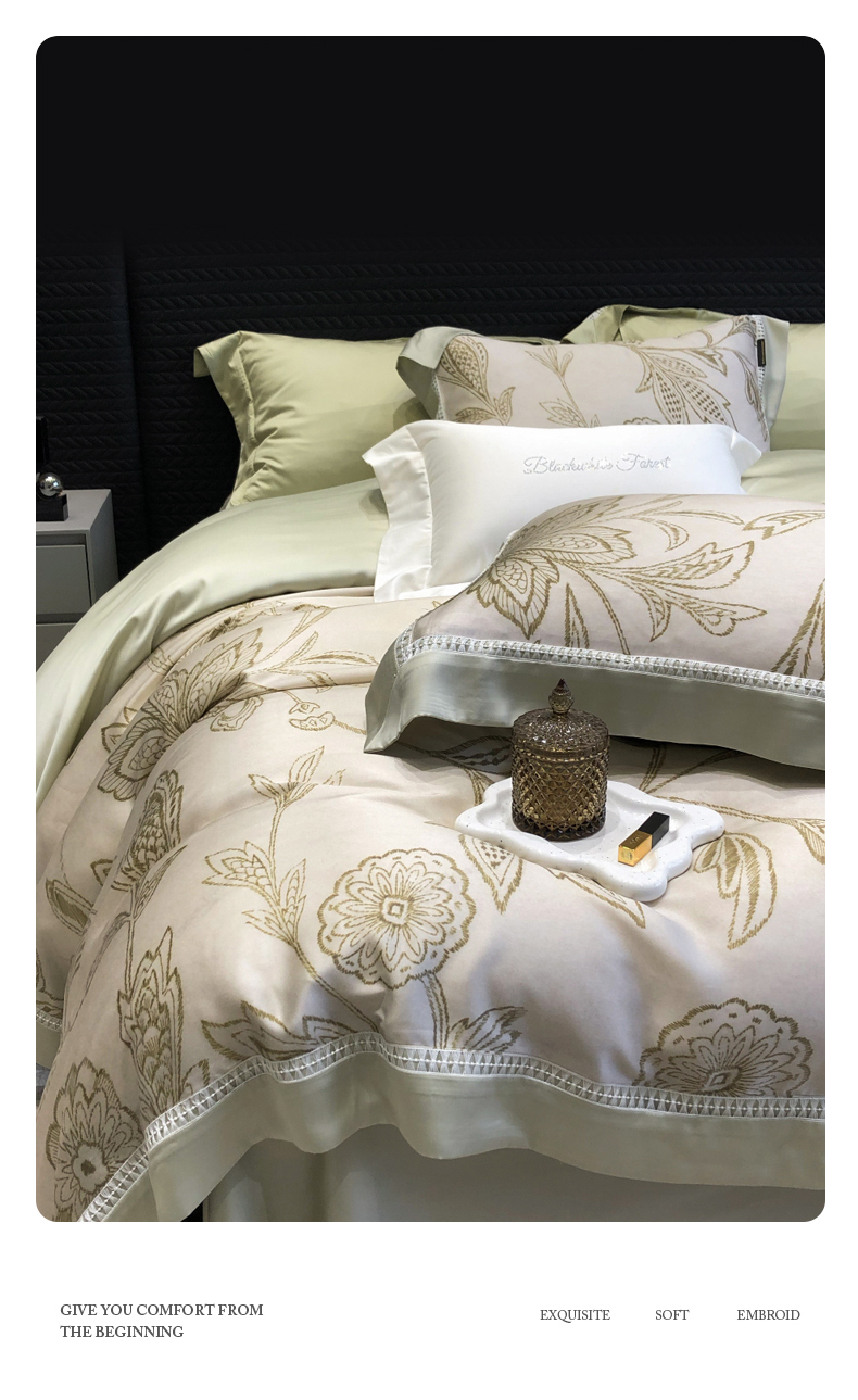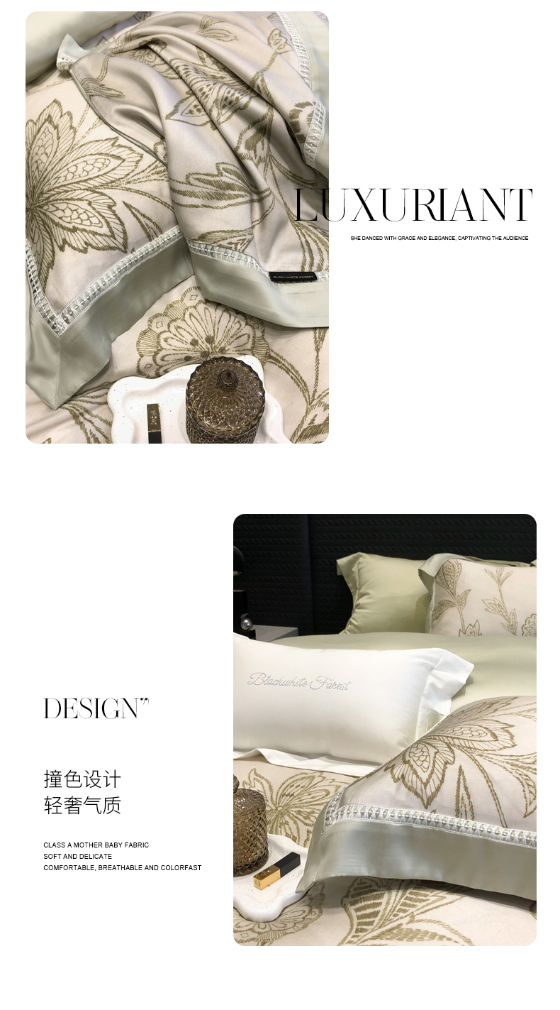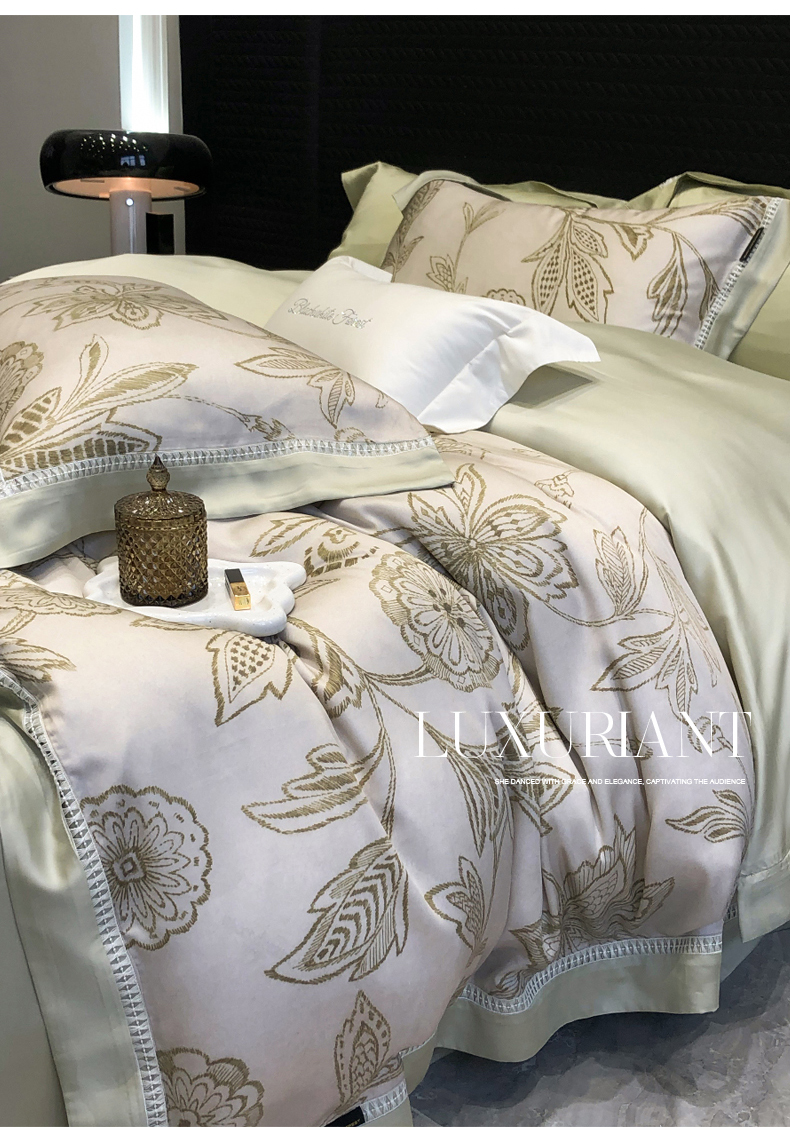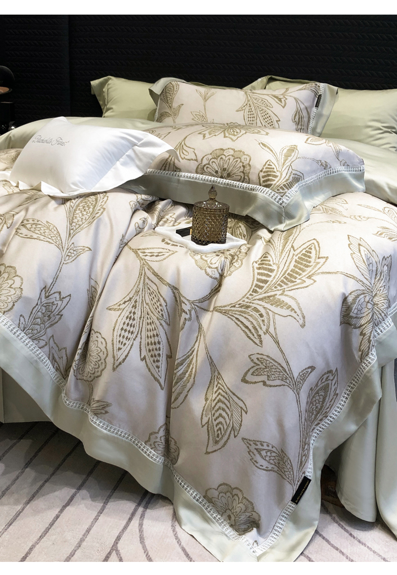 黑白森林2024款 100S支天丝棉提花四件套天丝全棉,芙拉维-裸灰,芙拉维-秋绿,圣露安-雾粉,圣露安-香槟,西西里-奶白,西西里-柔粉