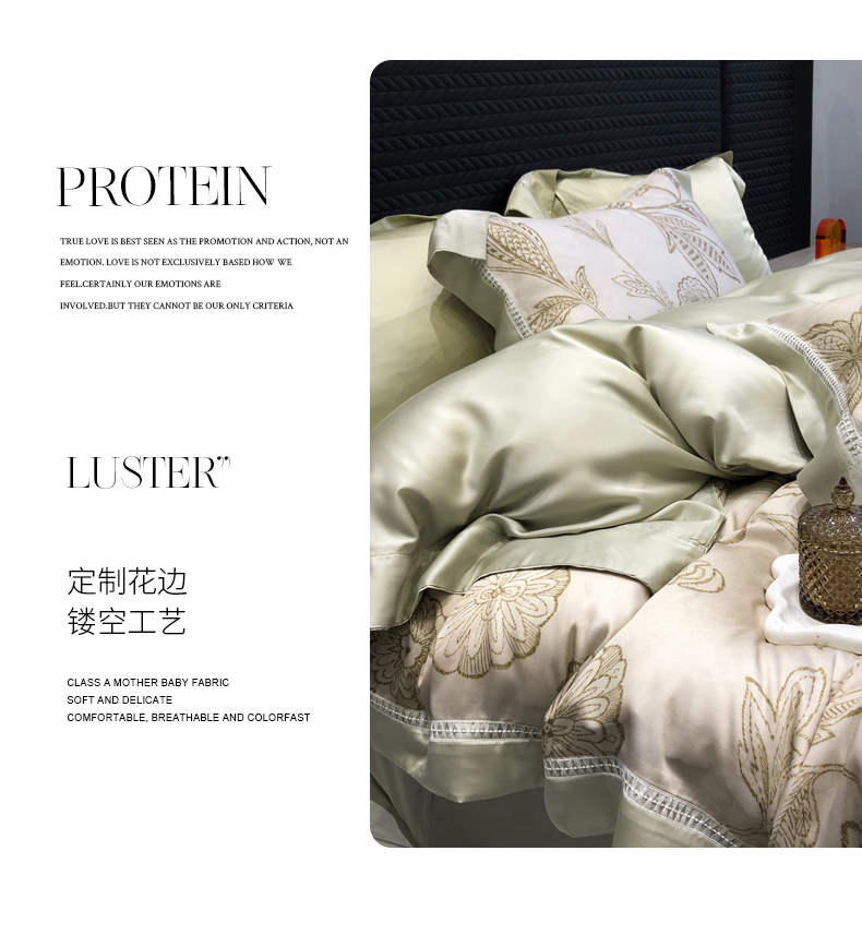 (总)黑白森林2024款 80X80S高支天丝棉四件套镂空蕾丝花边天丝全棉,尚美-晨夕粉,尚美-古象白,尚美-青砂绿,尚美-银雪灰