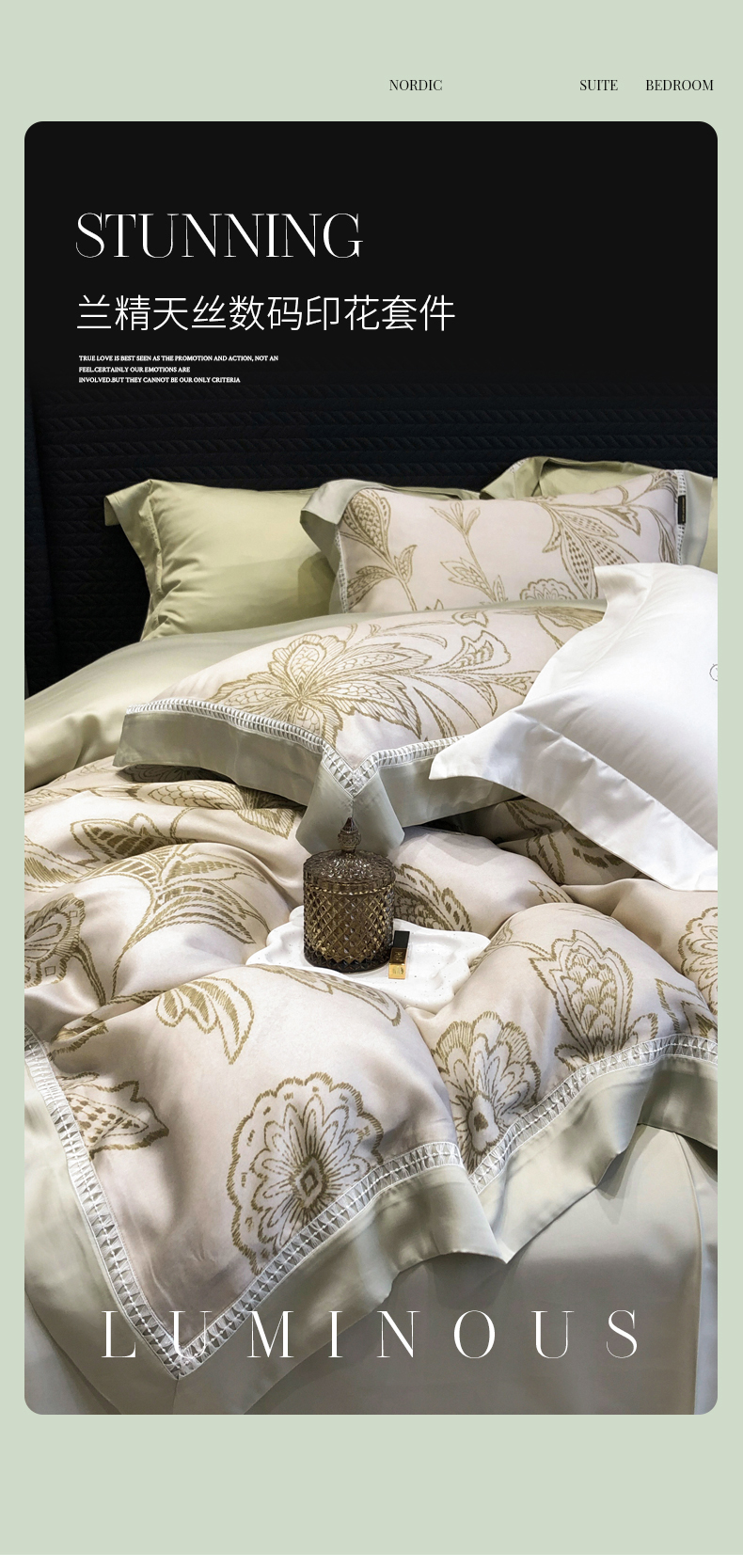 (总)黑白森林 2026新款天丝印花夏被四件套系列,觅羽-粉,觅羽-绿,慕颜,情愫-灰,如愿,薇宁