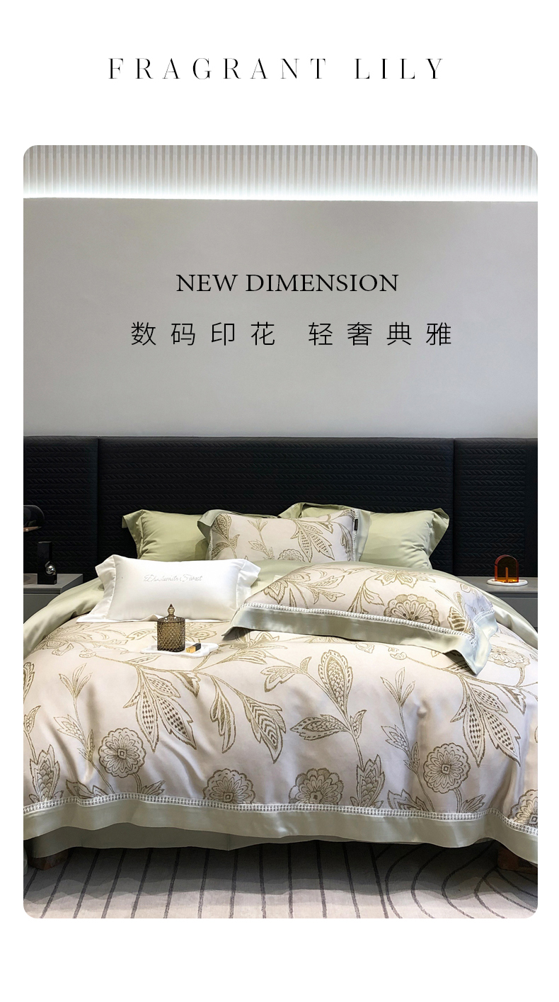 黑白森林2024款 50X50S高支天丝棉数码印花四件套天丝全棉,格伦黄,格伦绿,若瑶灰,羽笛蓝