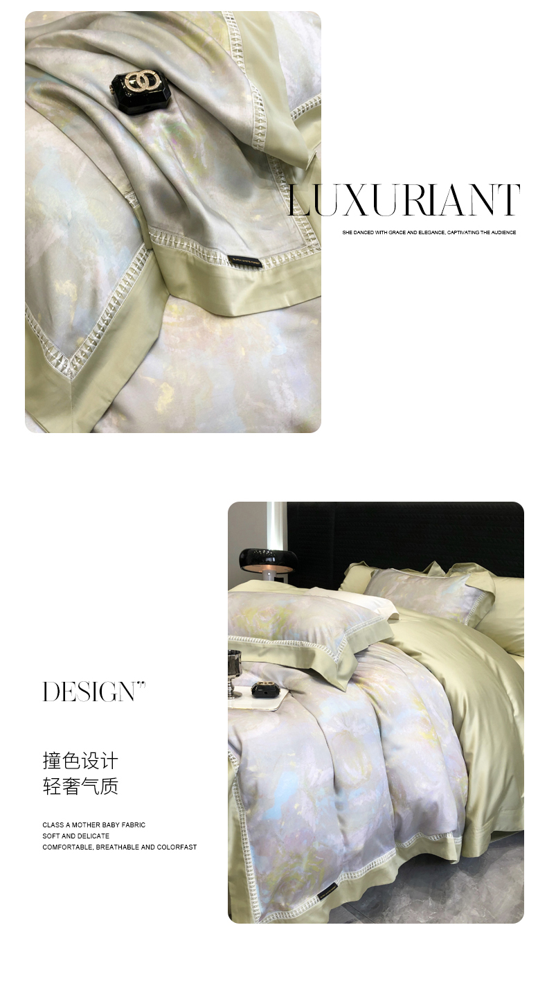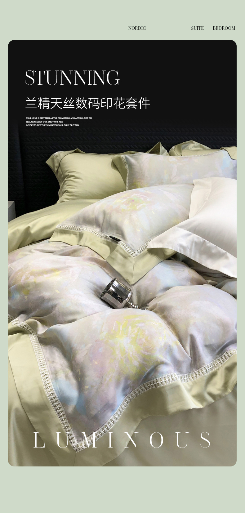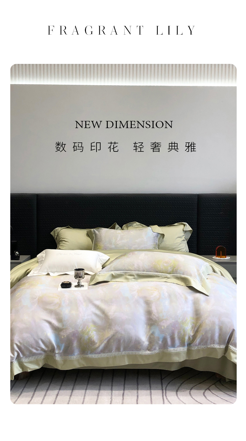 黑白森林2024款 50X50S高支天丝棉数码印花四件套天丝全棉,格伦黄,格伦绿,若瑶灰,羽笛蓝