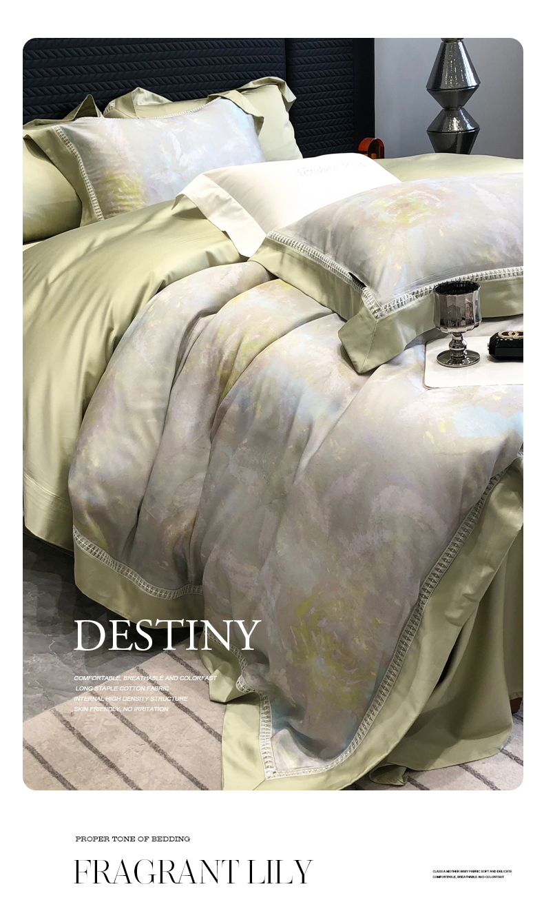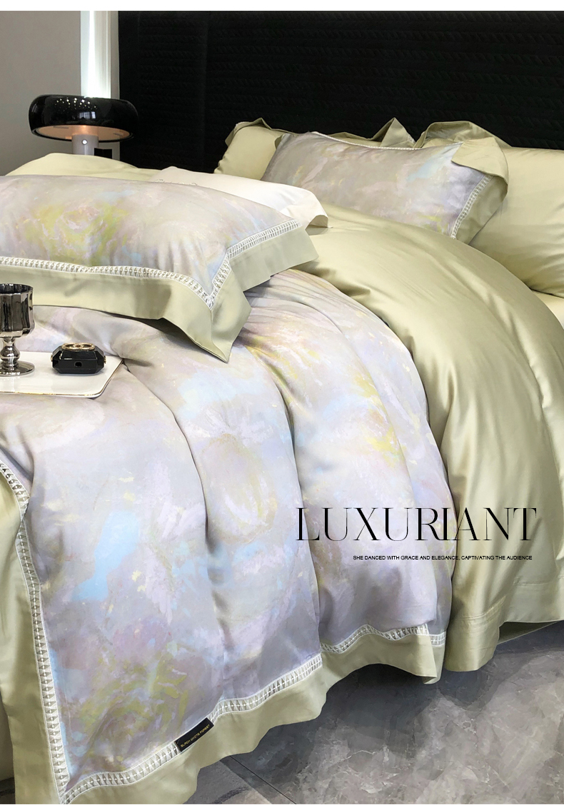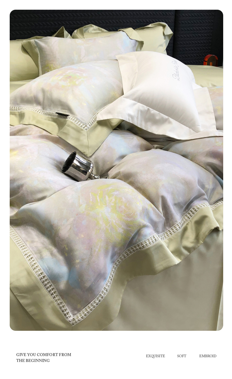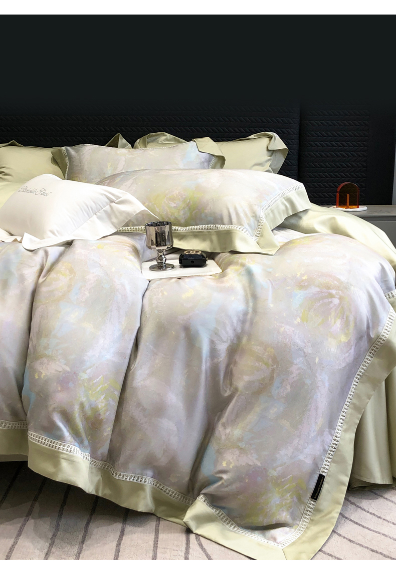 黑白森林2024款 50X50S高支天丝棉数码印花四件套天丝全棉,格伦黄,格伦绿,若瑶灰,羽笛蓝
