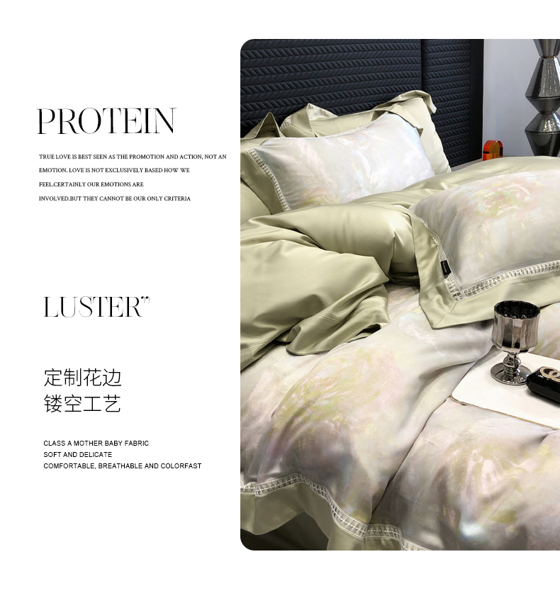 (总)黑白森林2024款 80X80S高支天丝棉四件套镂空蕾丝花边天丝全棉,尚美-晨夕粉,尚美-古象白,尚美-青砂绿,尚美-银雪灰