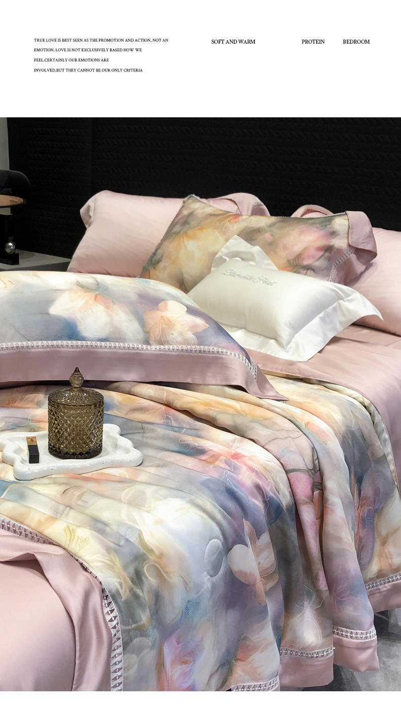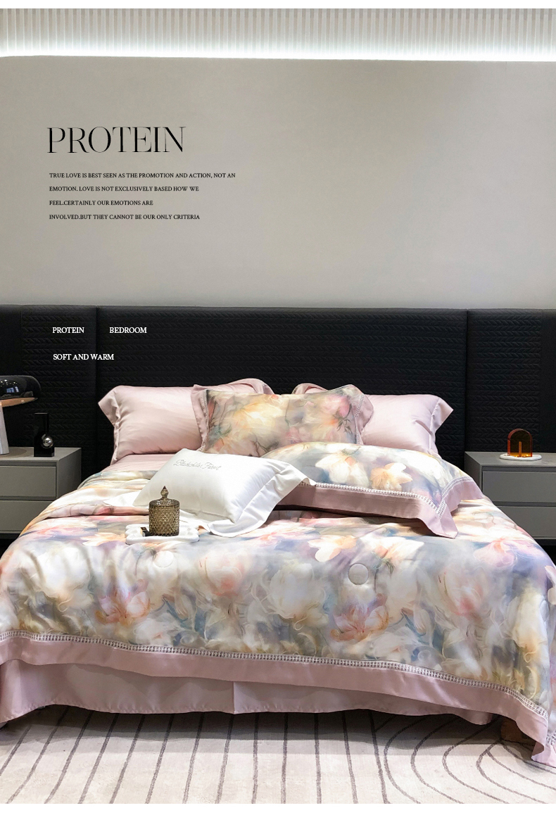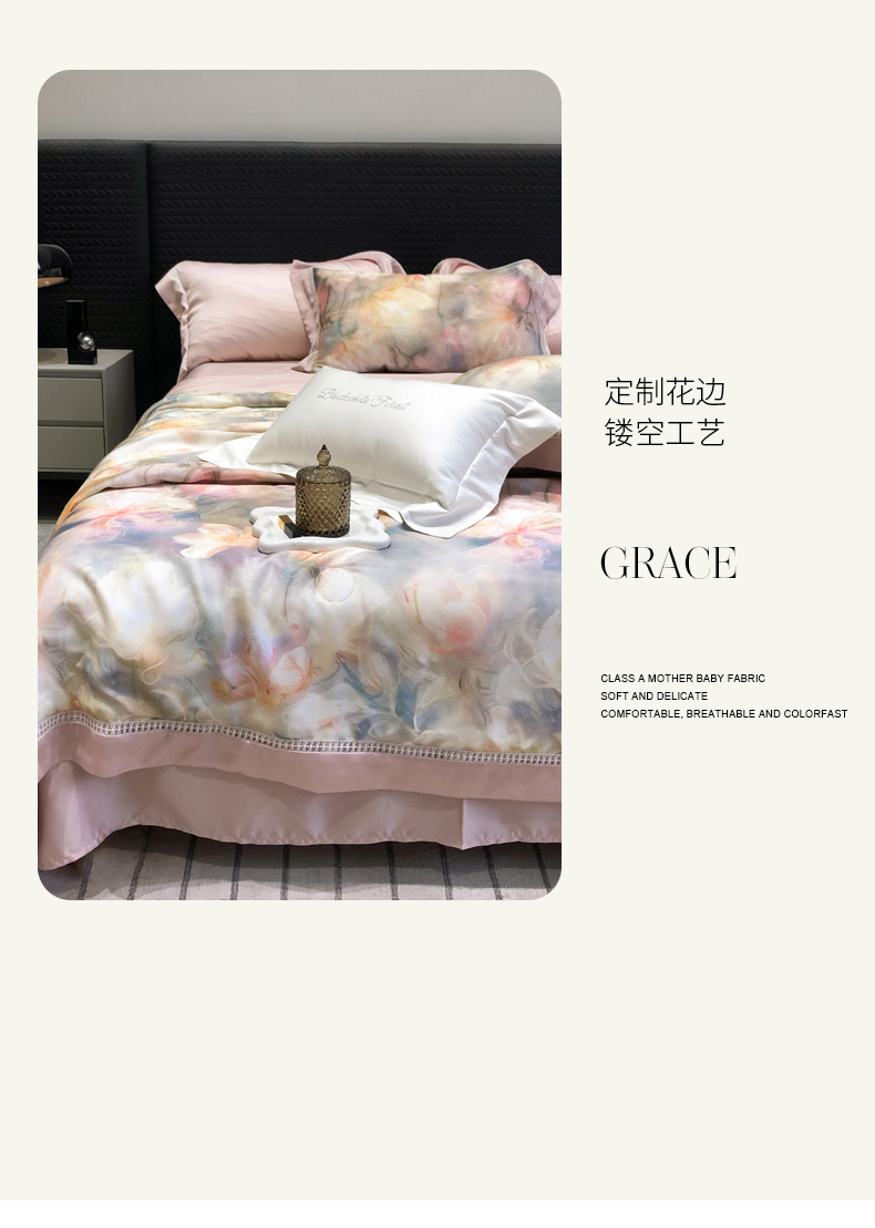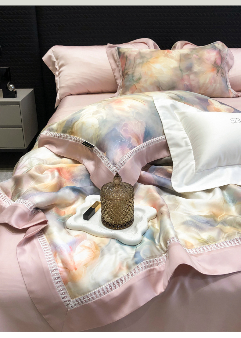 当前位置: 91家纺网 > 商品网购 > 床品套件 > 四件套 > 夏被四件套 > 黑白森林 2026新款天丝印花夏被四件套系列 梦境-粉