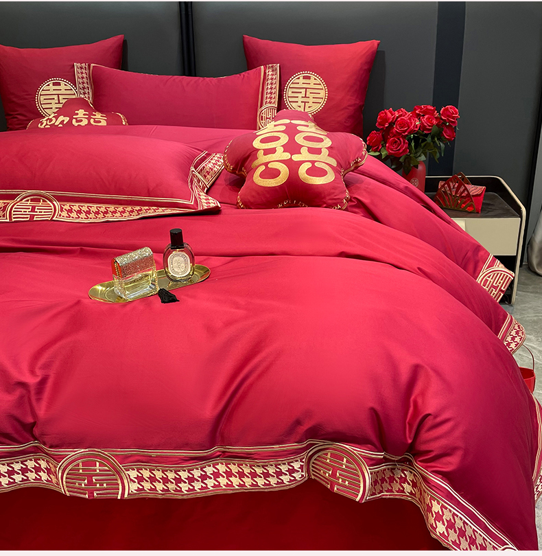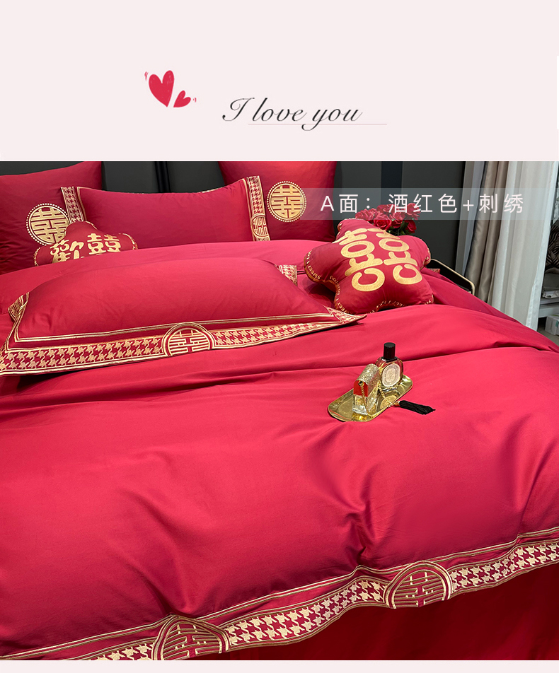 (总)甜咪咪婚庆 2025新款50支长绒棉全棉婚庆床单床盖四件套多件套刺绣工艺,洛可可,爱恋小熊,爱意久久,多子多福,花田喜事,节节高升,克拉恋人,浪漫情怀,怦然心动红,怦然心动玉,甜心玫瑰,温莎公主,伊甸园,醉红妆