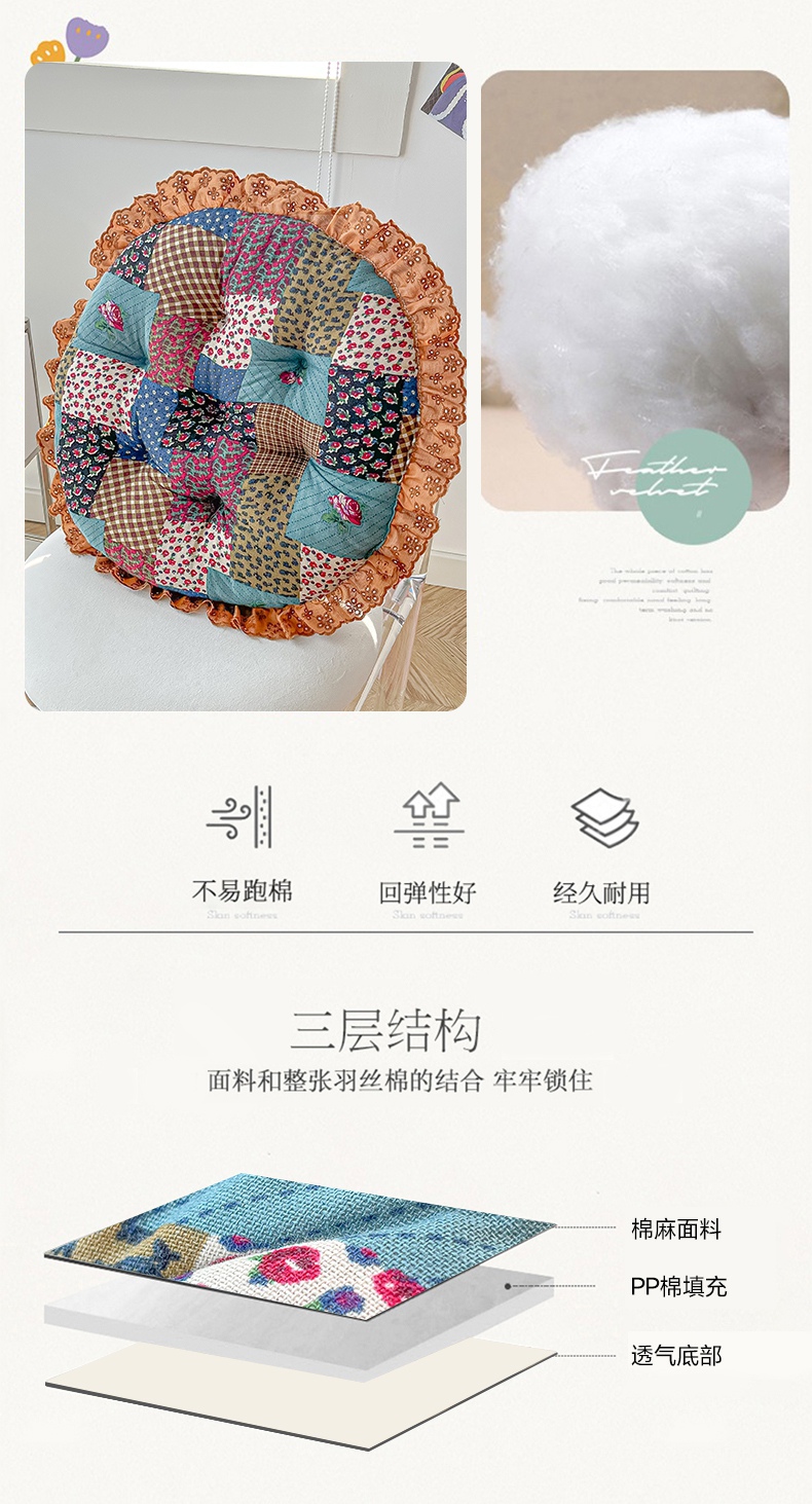 当前位置: 91家纺网 > 商品网购 > 居家布艺 > 坐垫/椅垫/沙发垫 > 椅垫 > 座享家 2026新款拼色仿棉麻花边团蒲坐垫 朱樱