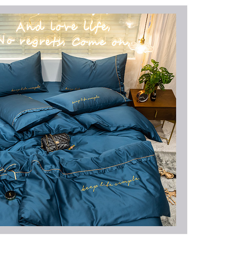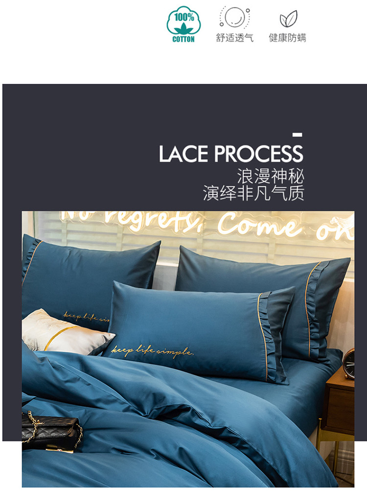 娇逸家纺 201960长绒棉简韩版安妮系列四件套 宝石蓝