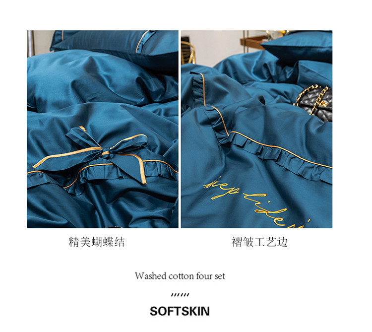 商品名称:娇逸家纺 201960长绒棉简韩版安妮系列四件套 宝石蓝
