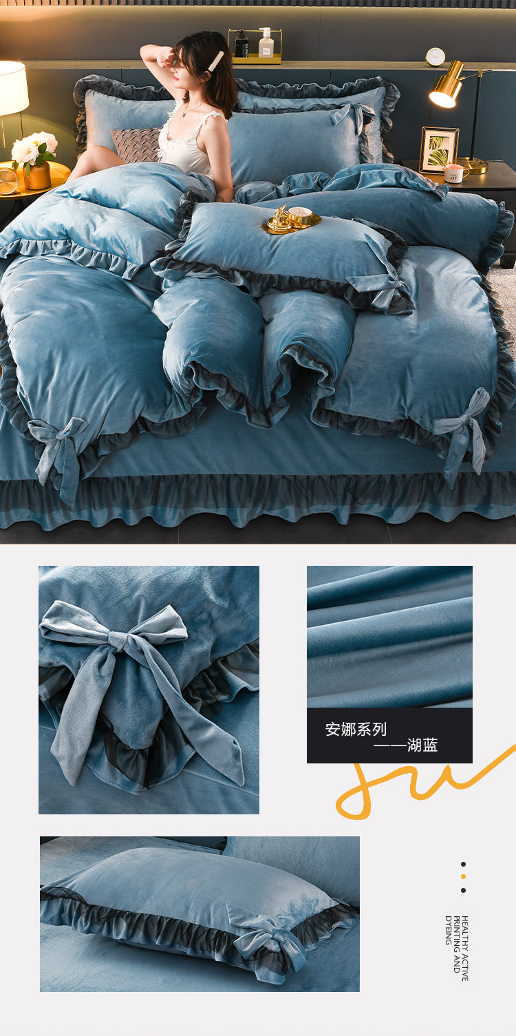 总-七七法莱绒牛奶绒宝宝绒花边蝴蝶结水晶绒四件套安娜系列
