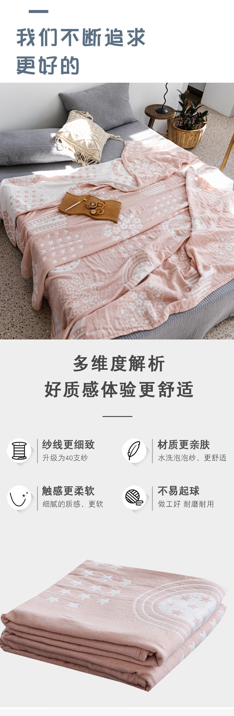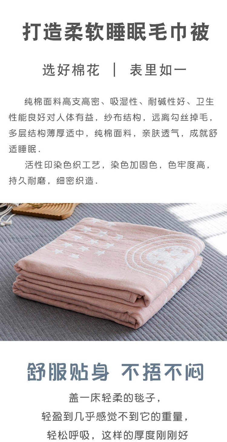 商品名称:朴尔家纺 新款加厚三层水洗棉全棉纱布毛巾被 星星点点-粉