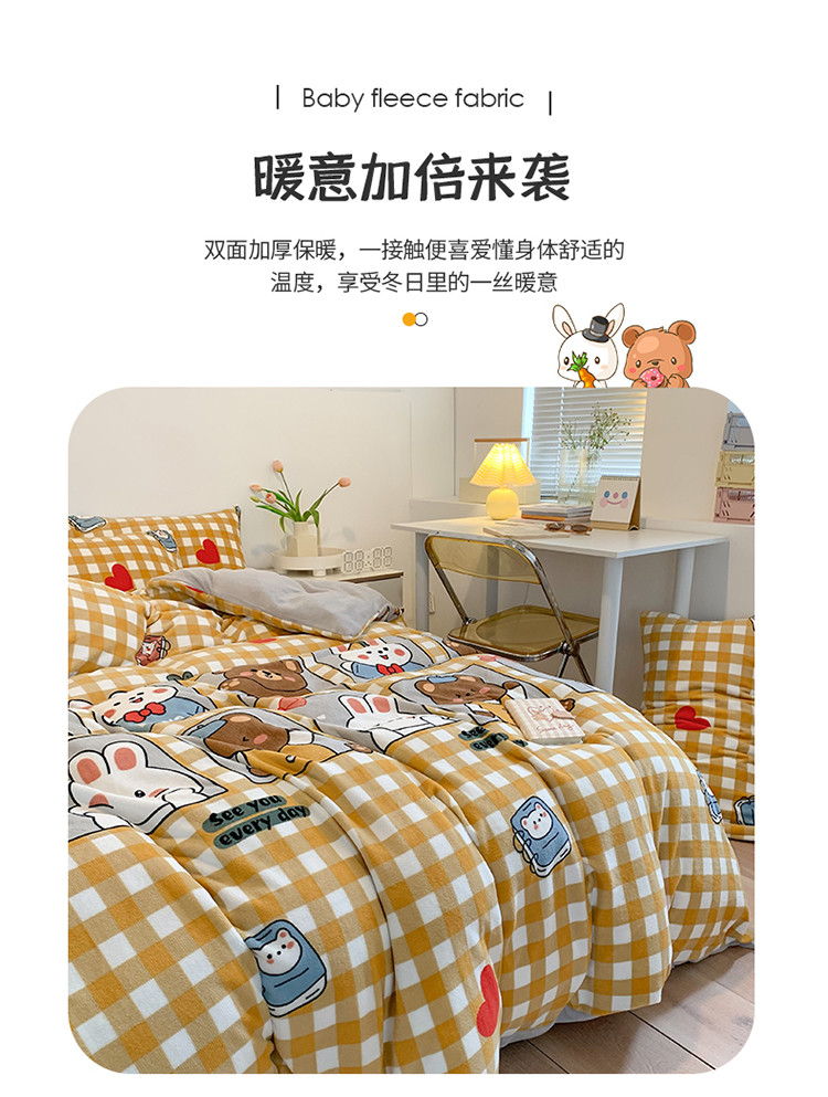 澳萝拉2021高克重卡通清新牛奶绒四件套水晶法莱绒浪漫满屋
