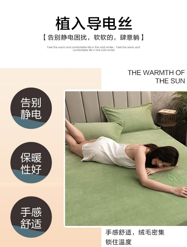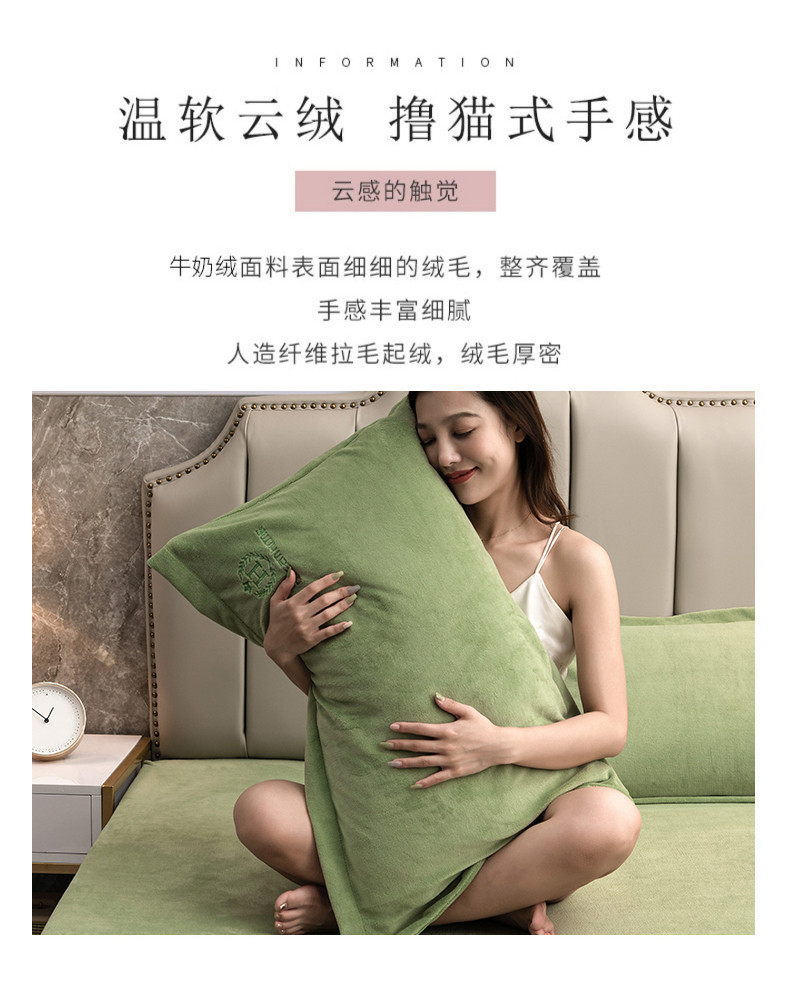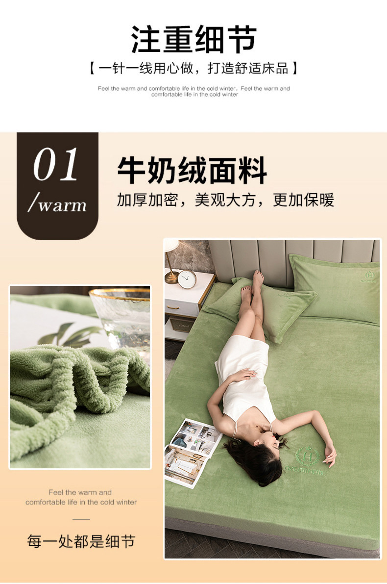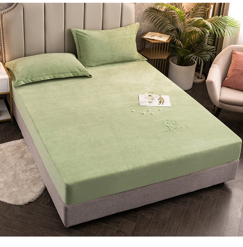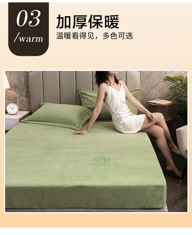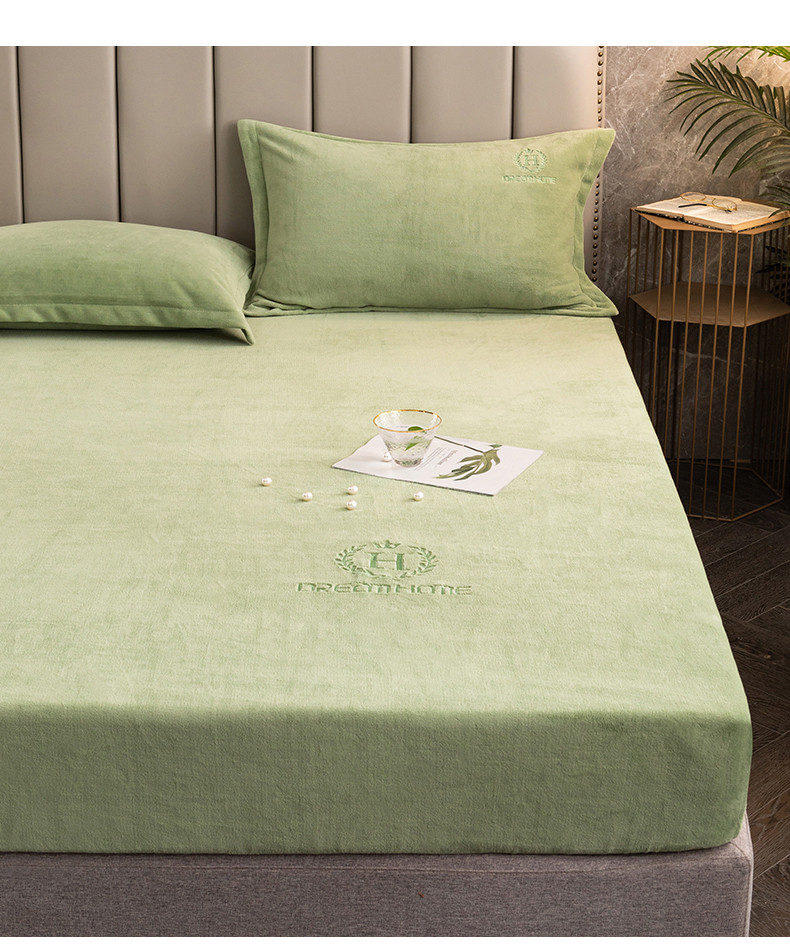 澳萝拉家居 2021新款纯色牛奶绒单床笠 抹茶绿