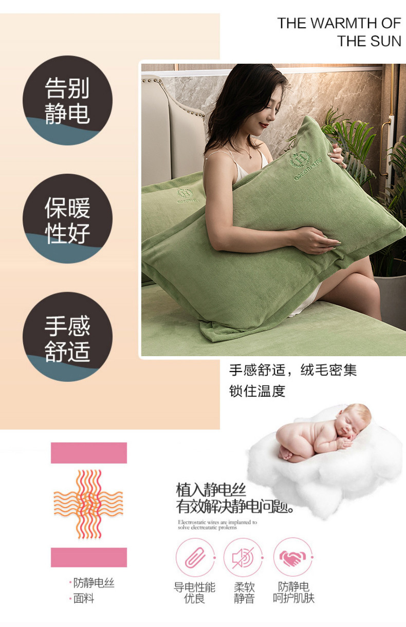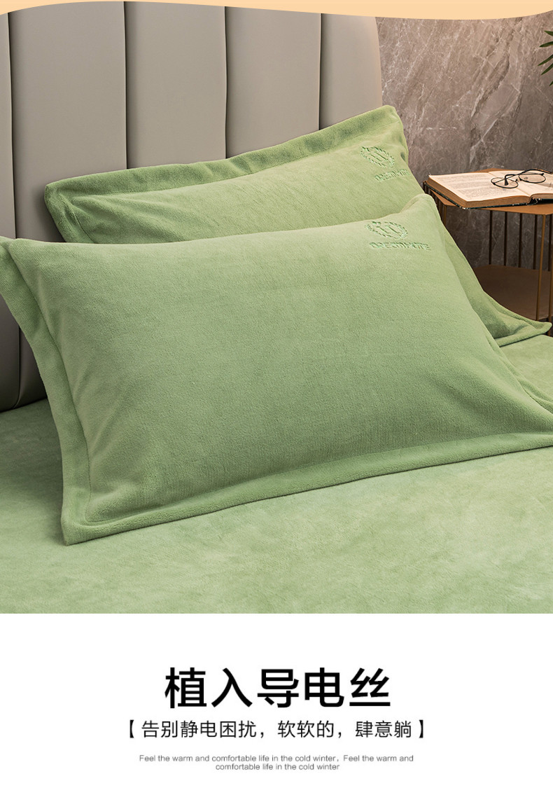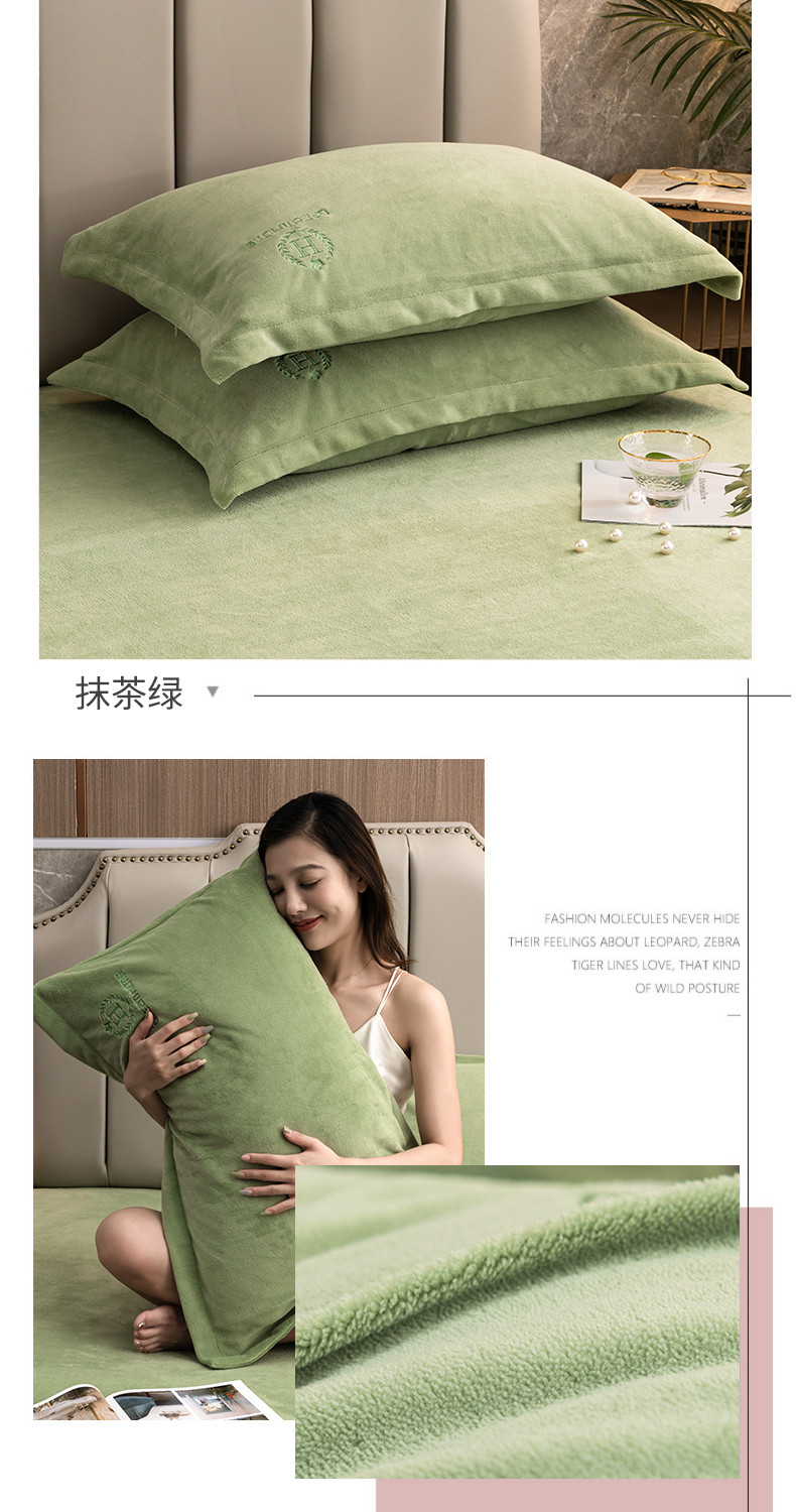 商品名称:澳萝拉家居 2021新款纯色牛奶绒枕套一对 抹茶绿