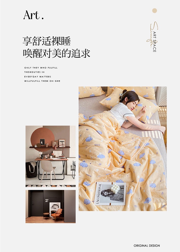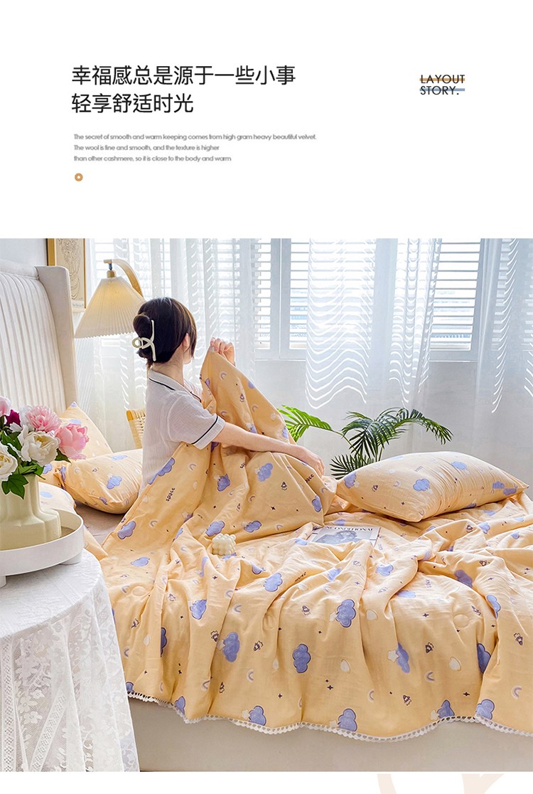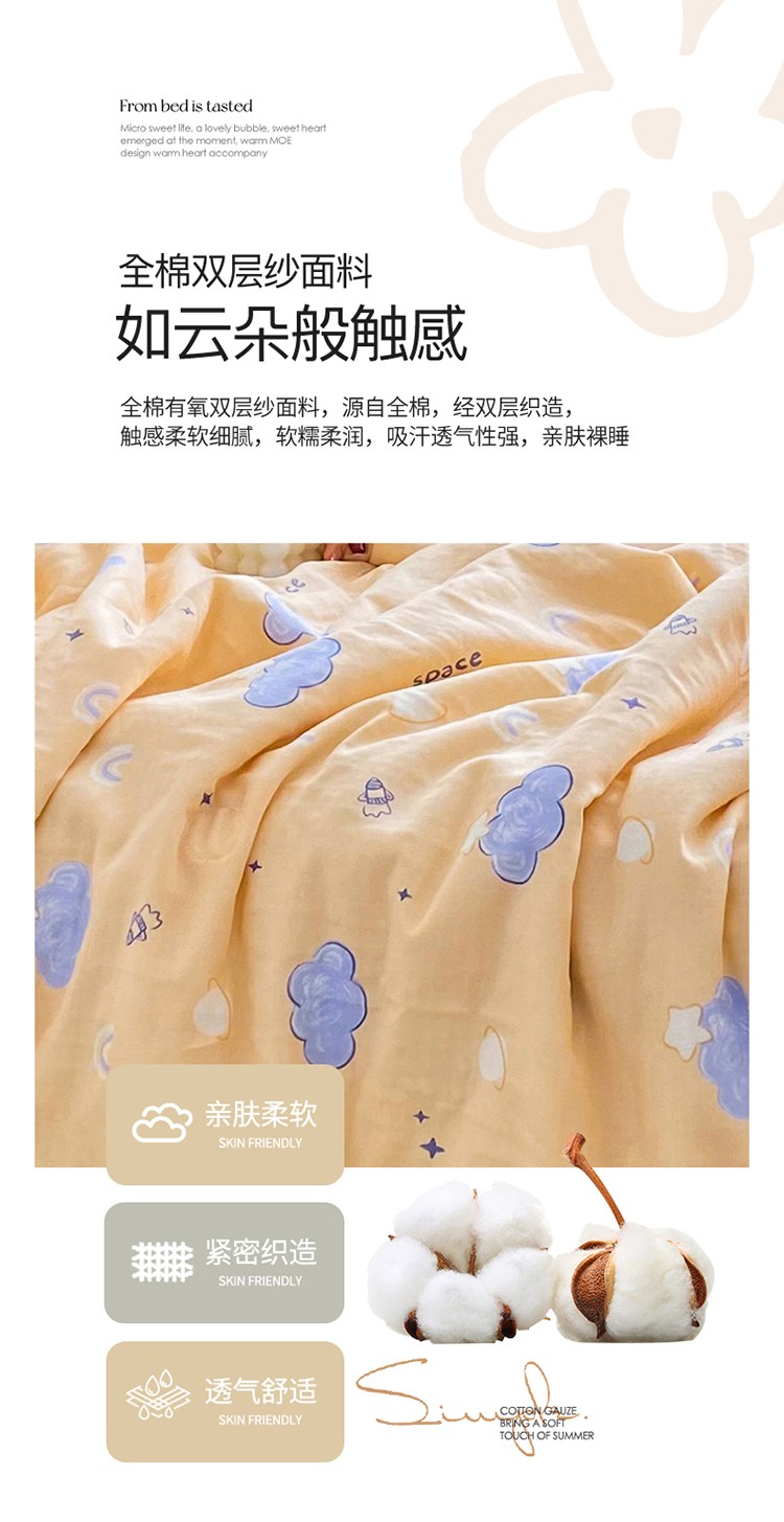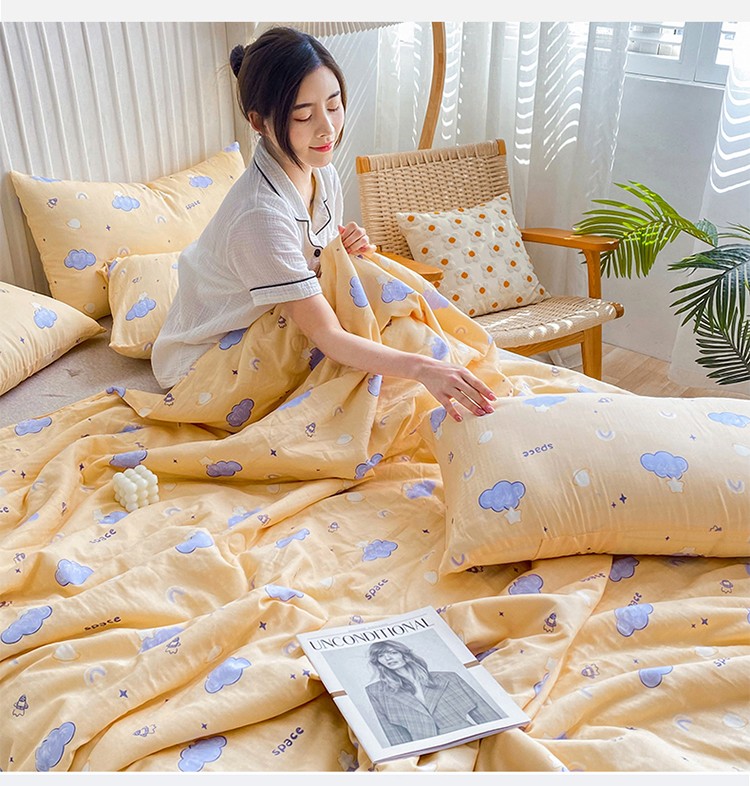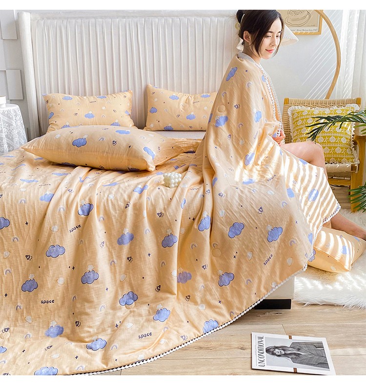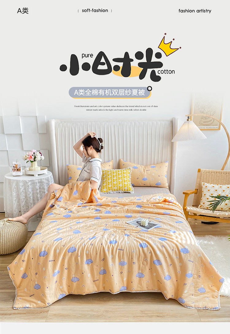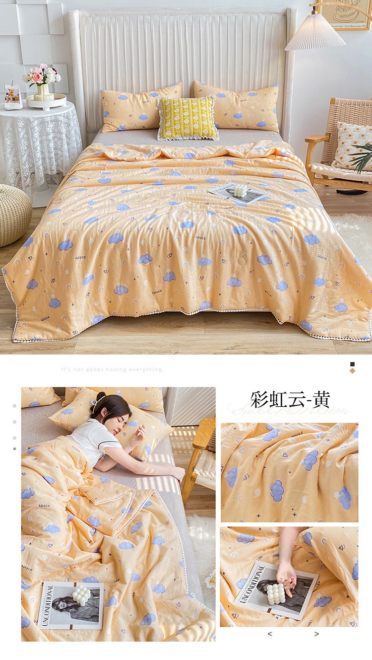 (总)吾秀 2022 A类全棉有氧双层纱夏被 全棉夏被盖毯子,彩虹云-黄,蝶束花-黄,木棉花,秋恋,恬淡-蓝,香橙,幸运星-粉,紫苏叶