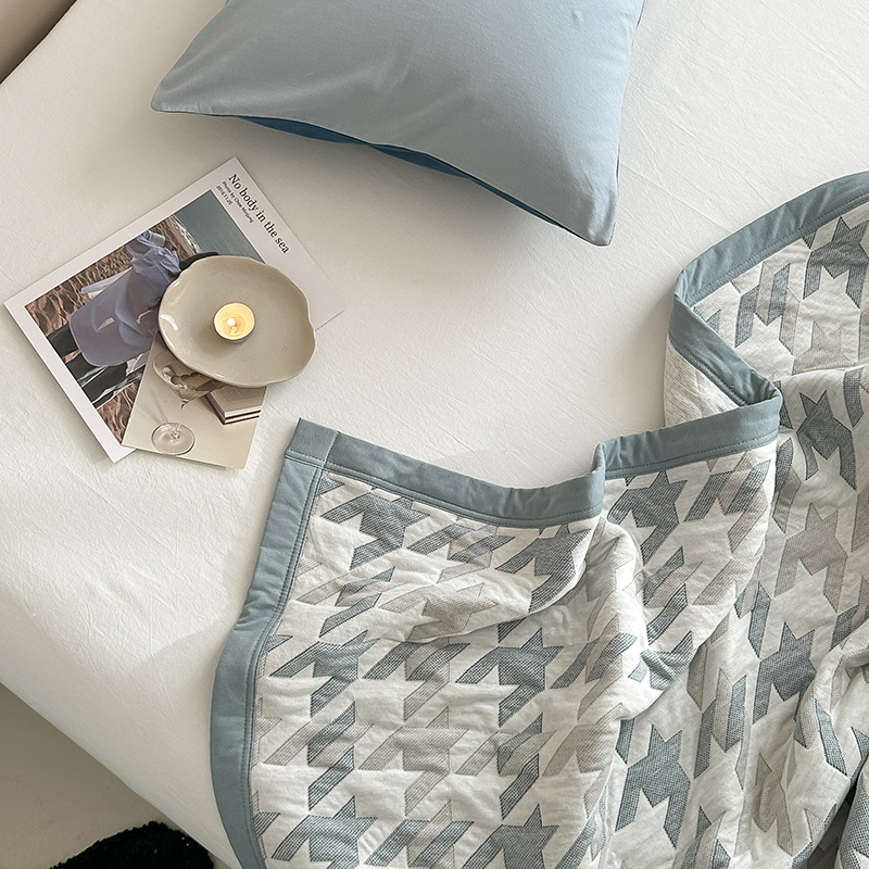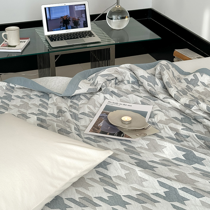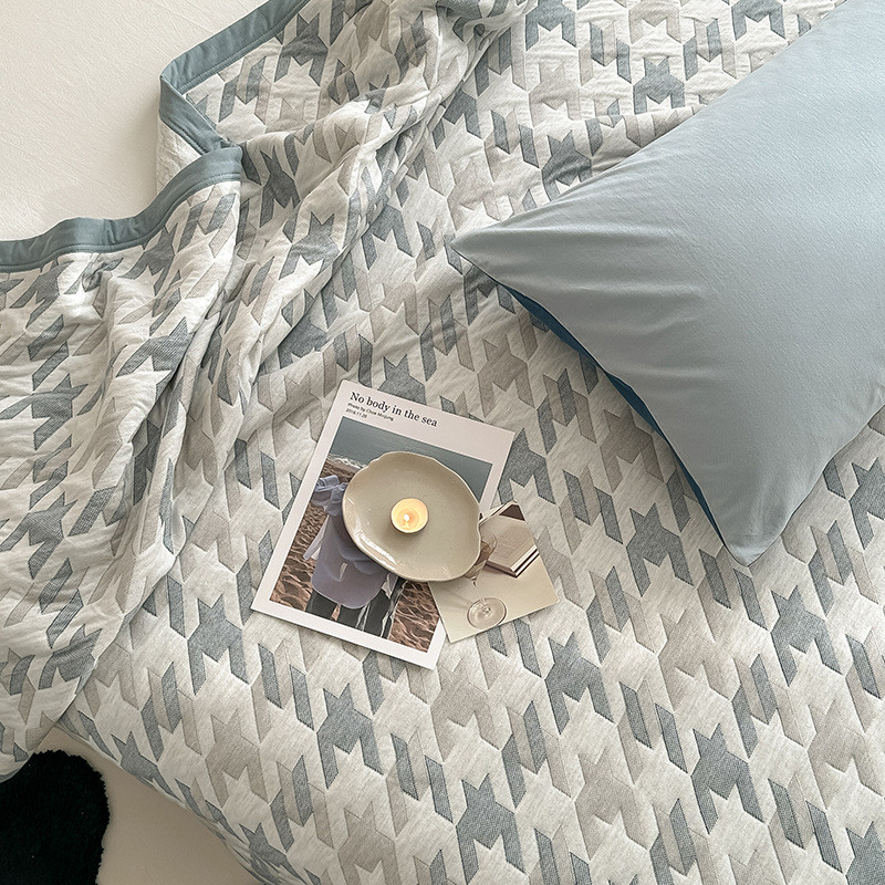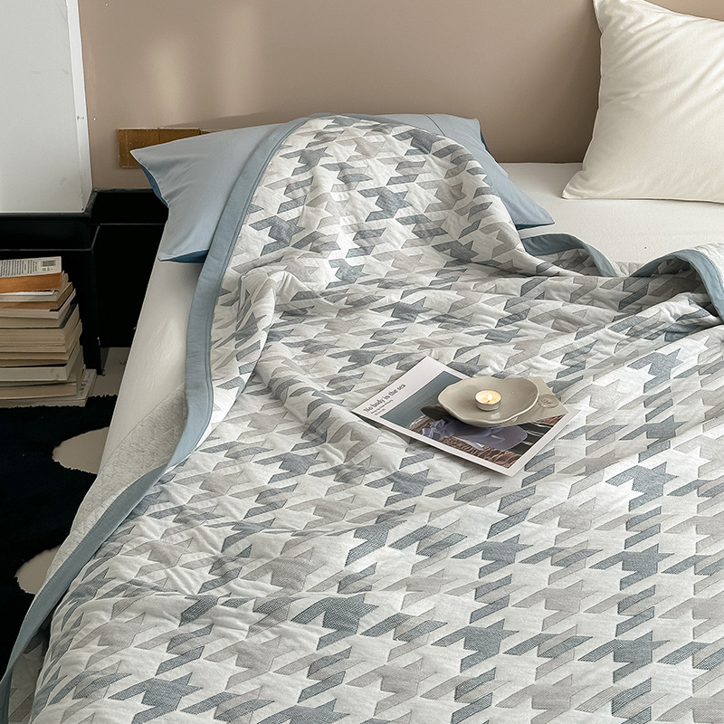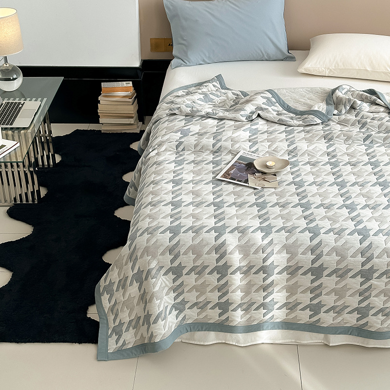 吾秀 2023 A类色织全棉针织提花盖毯 彩格千鸟格-灰,彩格千鸟格-灰