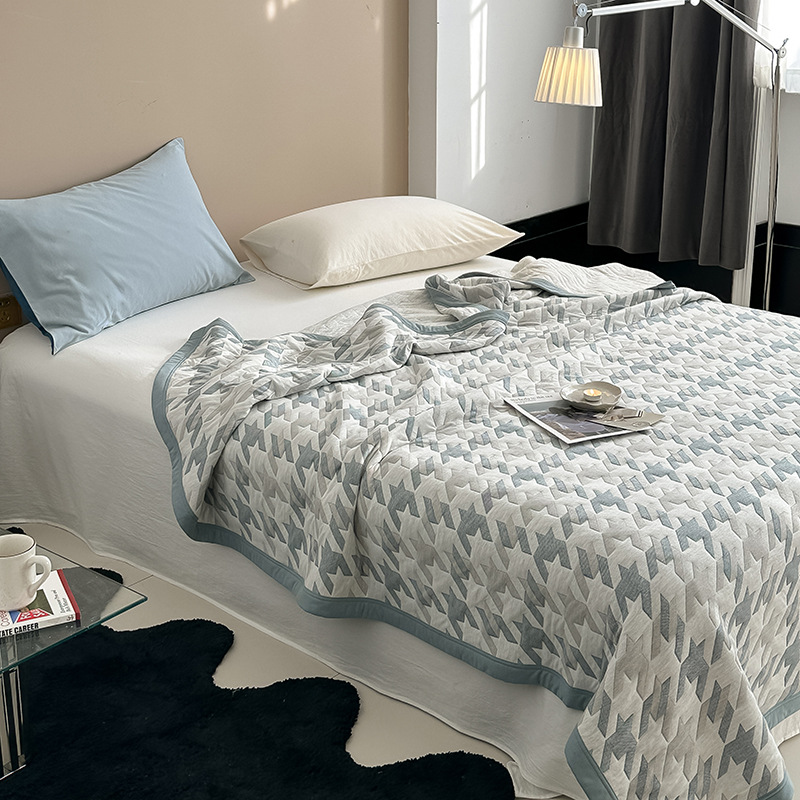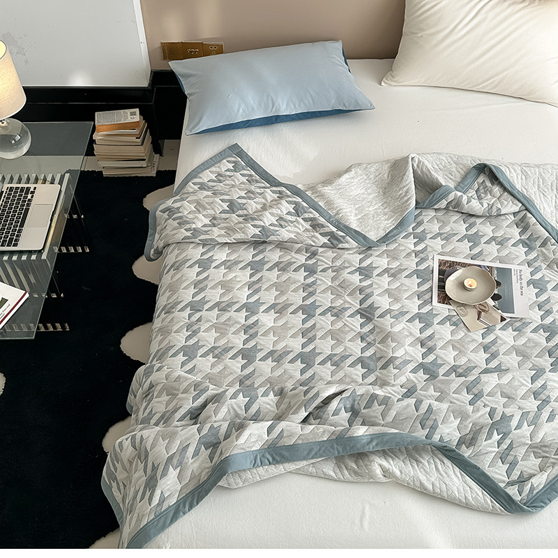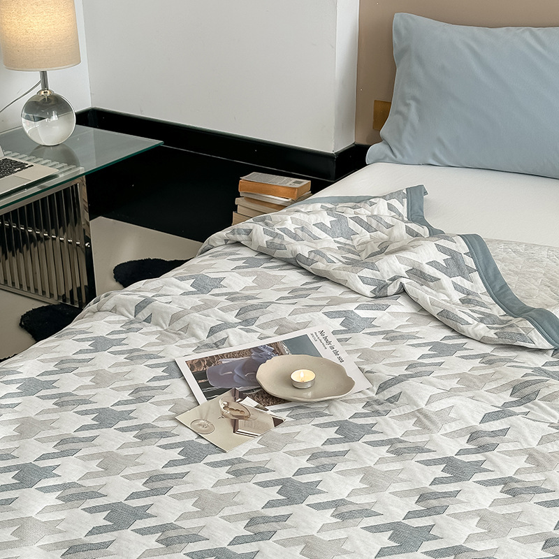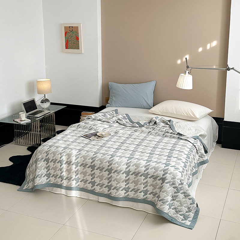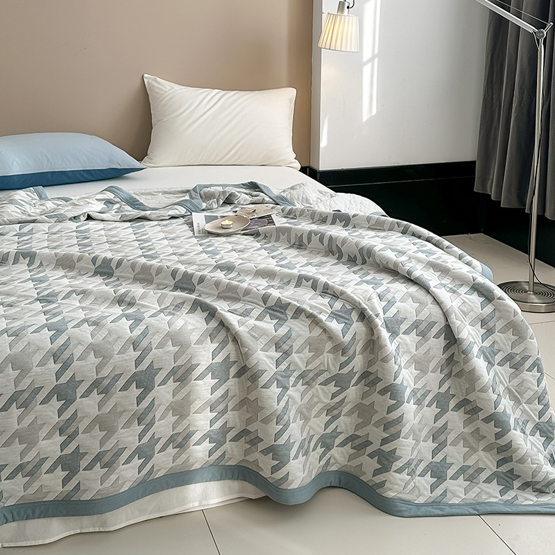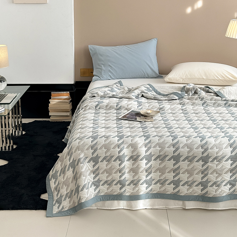 吾秀 2023 A类色织全棉针织提花盖毯 彩格千鸟格-灰,彩格千鸟格-灰
