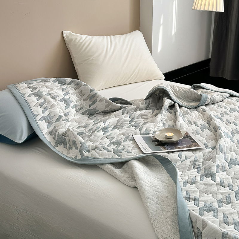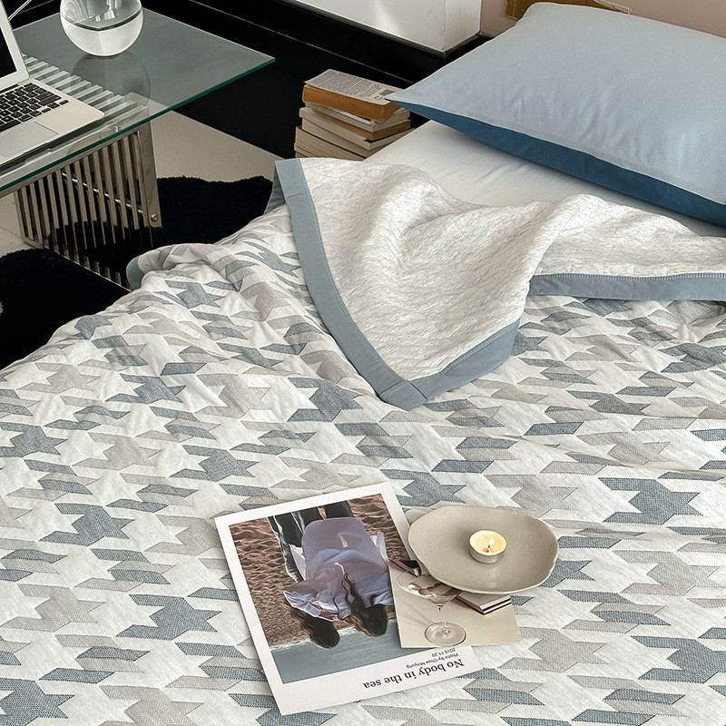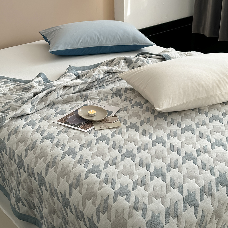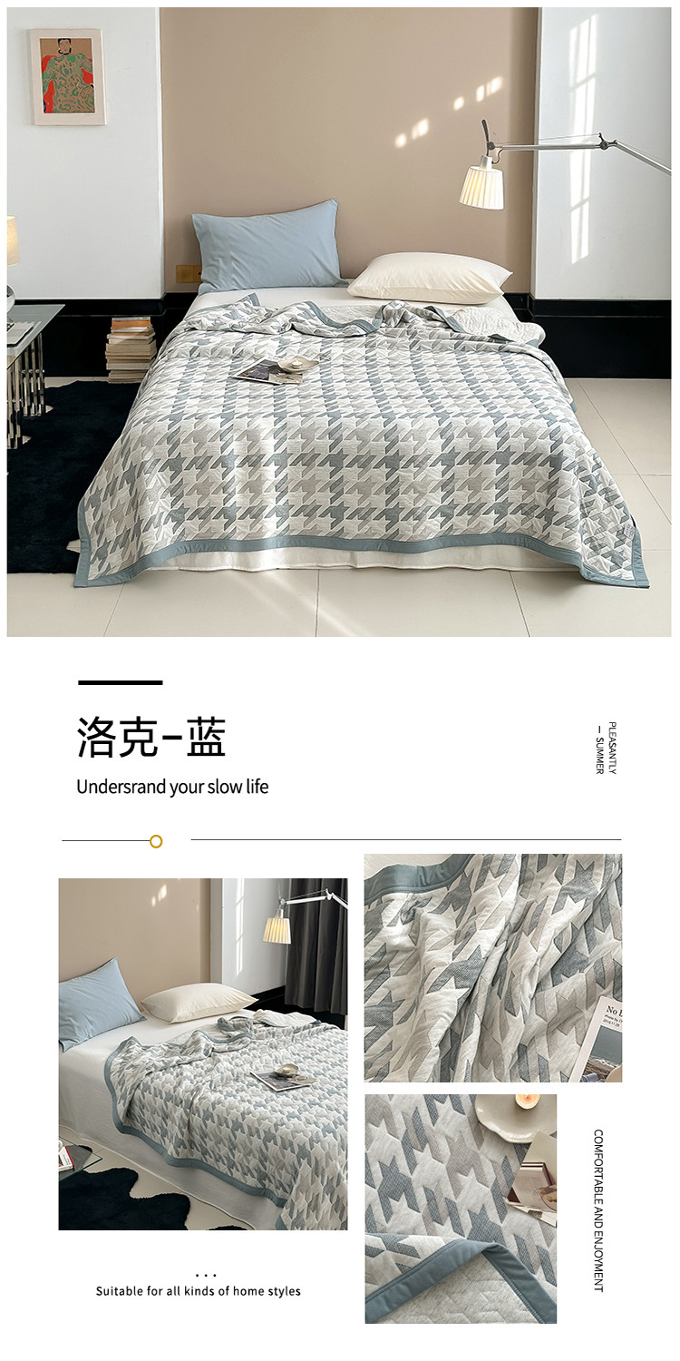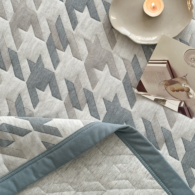 商品名称:吾秀 2023 A类色织全棉针织提花盖毯 洛克-蓝