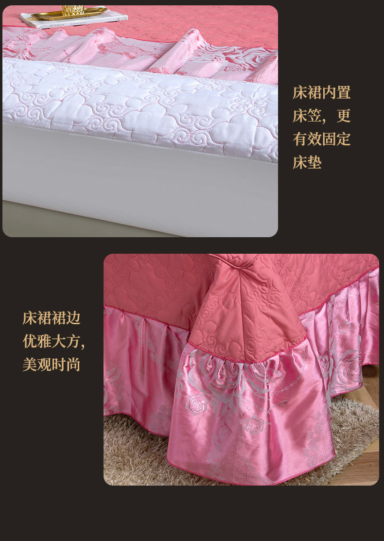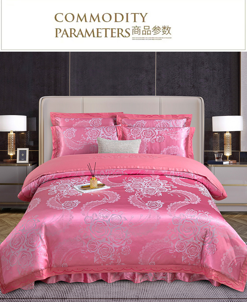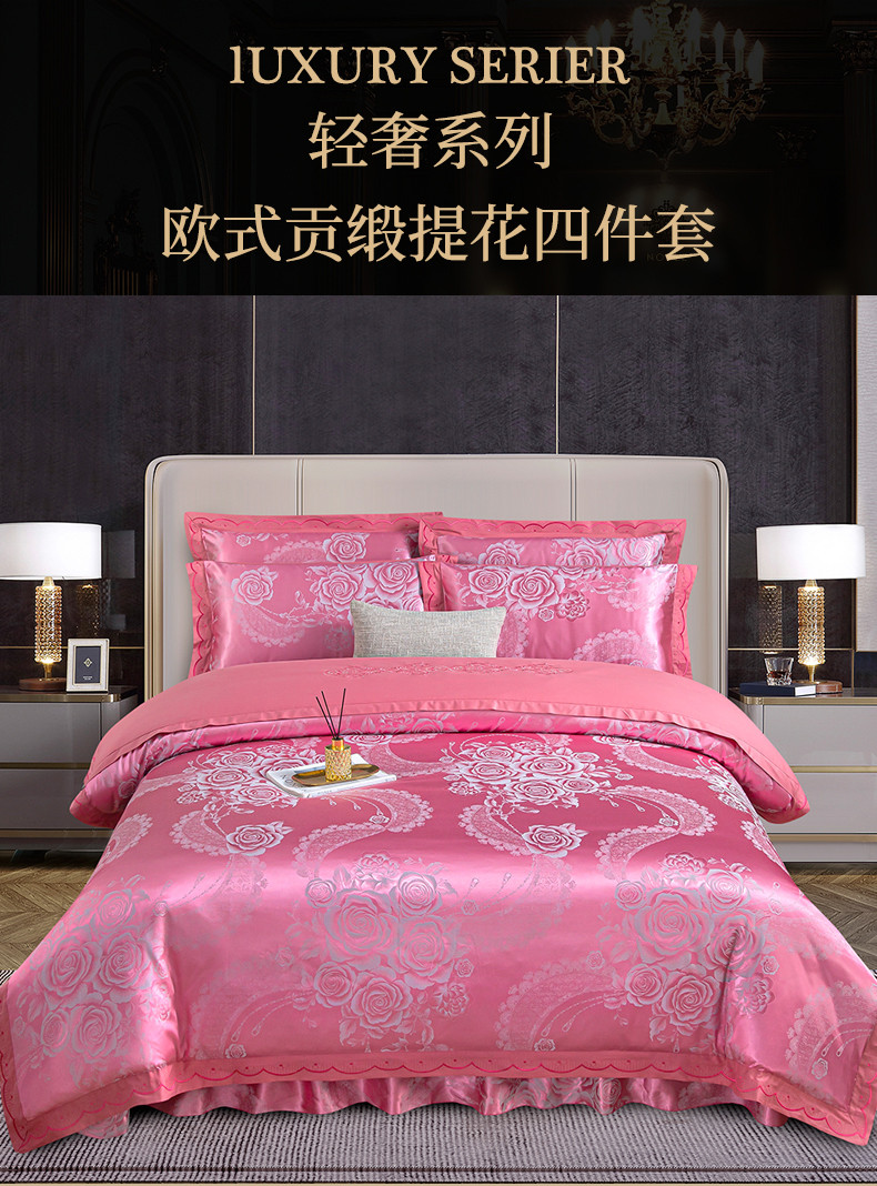 (总) 福丽莱家纺 2019贡缎提花床裙四件套(单层),黛香-豆沙,典范欧风-蓝灰,菲洛嘉,国色佳人,花团锦簇-银灰,花团锦簇-粉玉,玛格丽特-金兰,玫瑰风情-大红,摩卡庄园-紫驼,暖心芳妍-大红,浅芳菲-粉紫,喜上眉梢-砖红,仙境青色