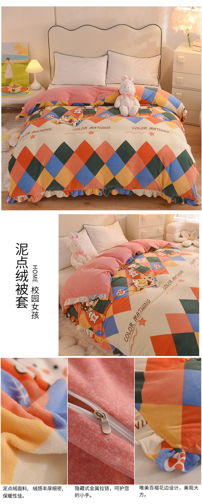 • 91家纺网 家纺一手货源 找家纺 甜之梦家纺 2025新款韩版泥点绒单被套(任何尺寸都可定做) 校园女孩