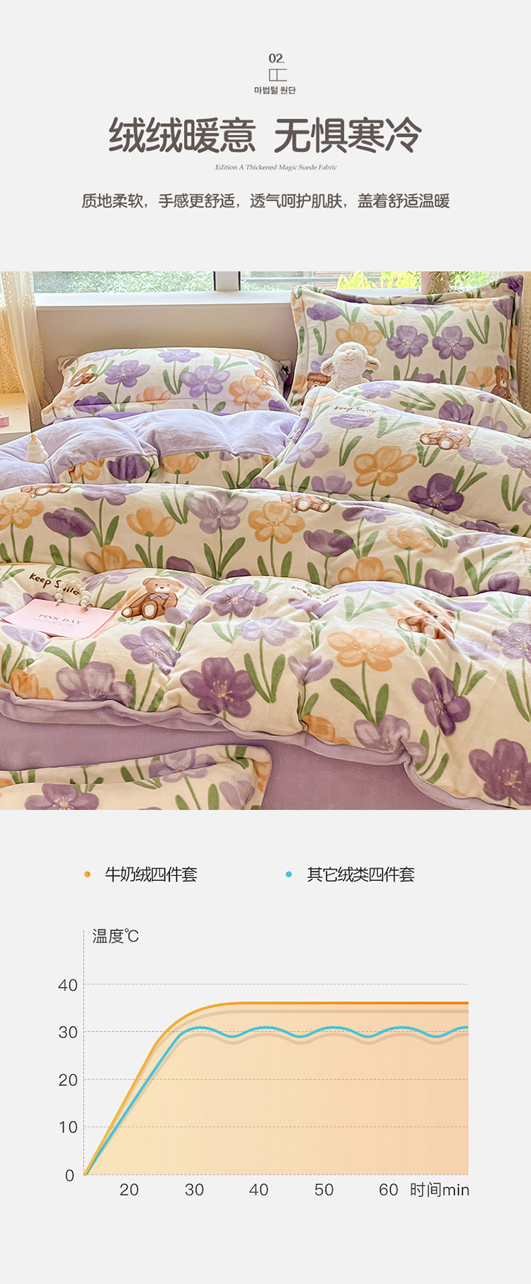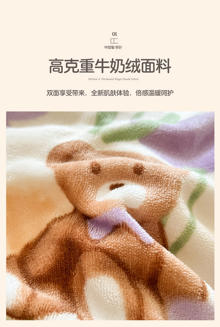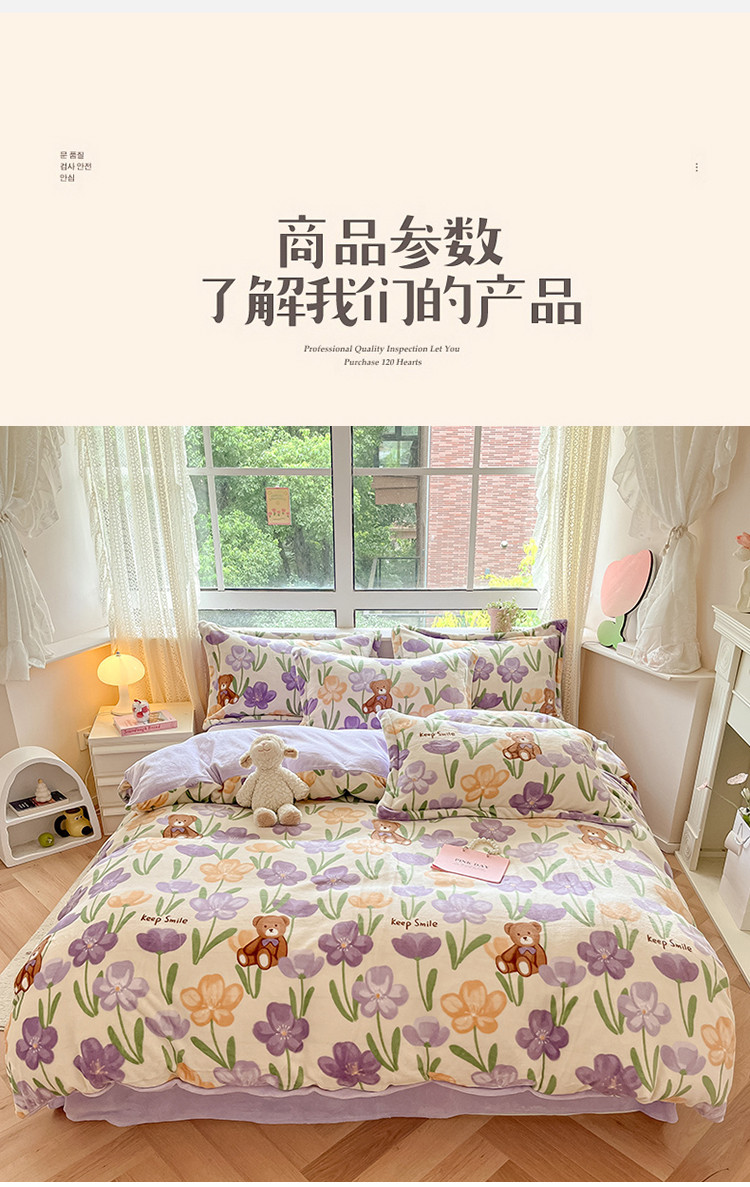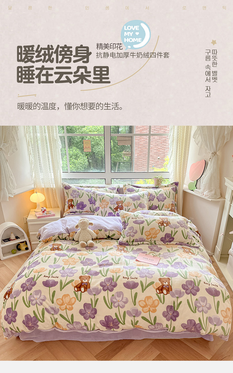 商品名称:沐棉 2023新款牛奶绒印花+小清新四件套 花园小熊
