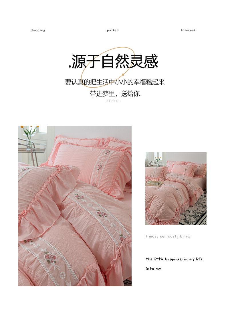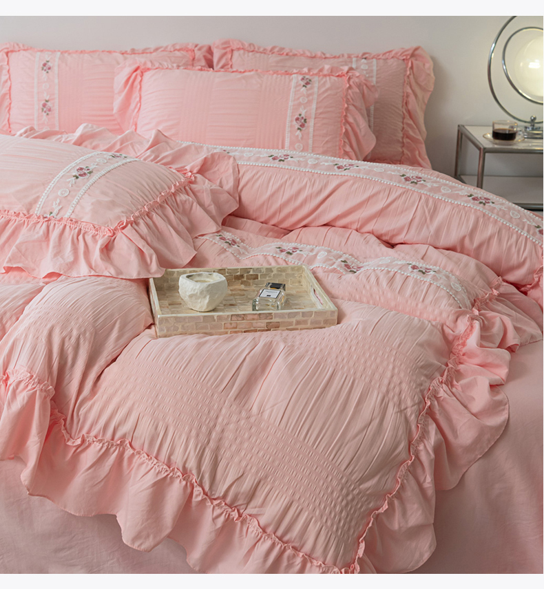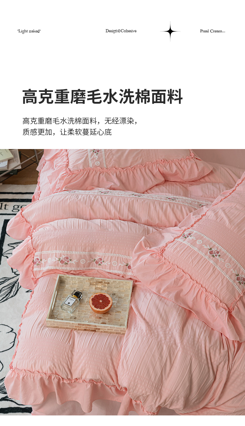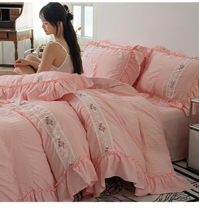 当前位置: 91家纺网 > 商品网购 > 床品套件 > 四件套 > 水洗棉四件套 > 你好美丽 2025新款泡泡纱刺绣花边四件套 泡泡纱-樱花粉