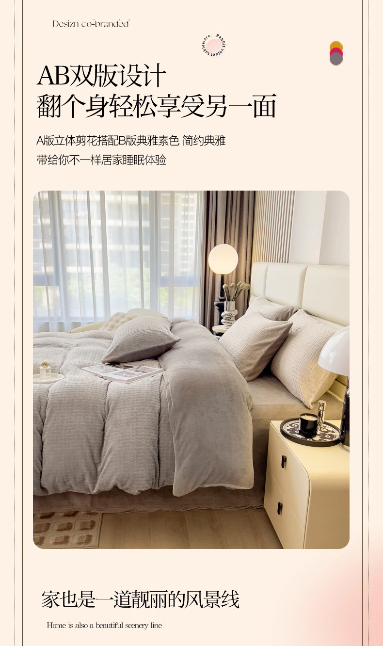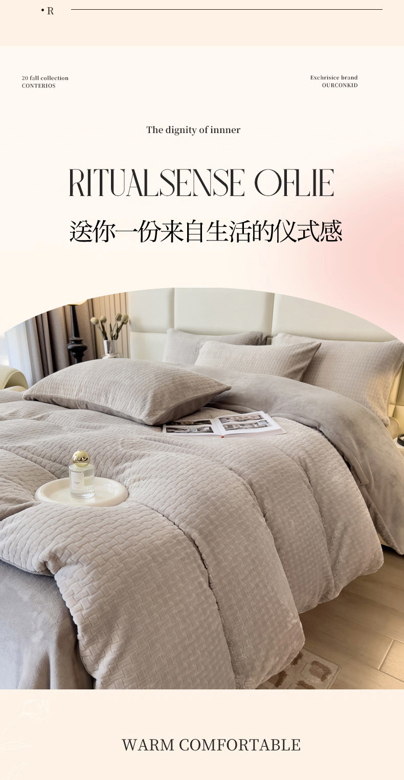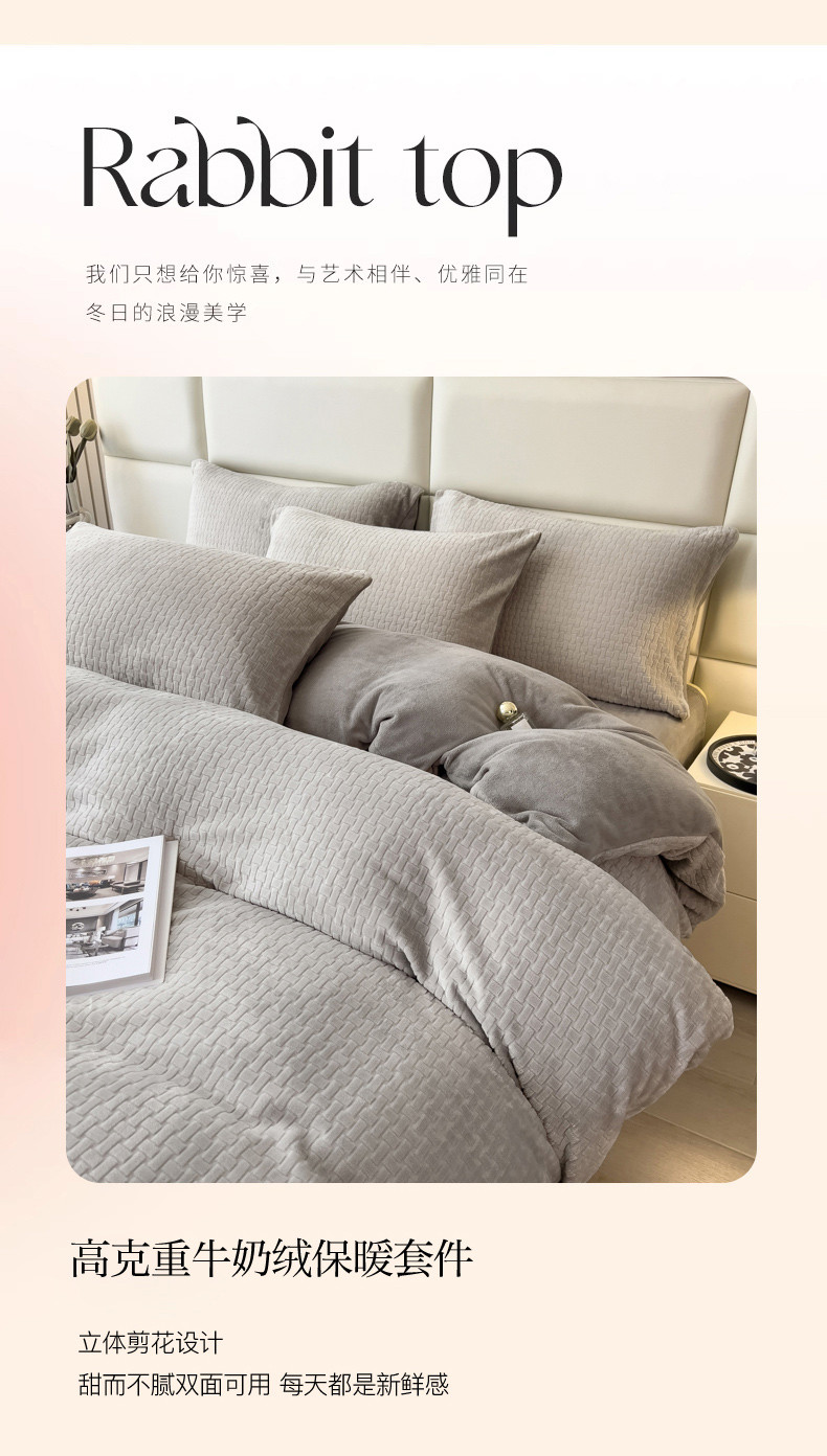 商品名称:印季 2024新款立体剪花牛奶绒保暖四件套-十字结 高级灰