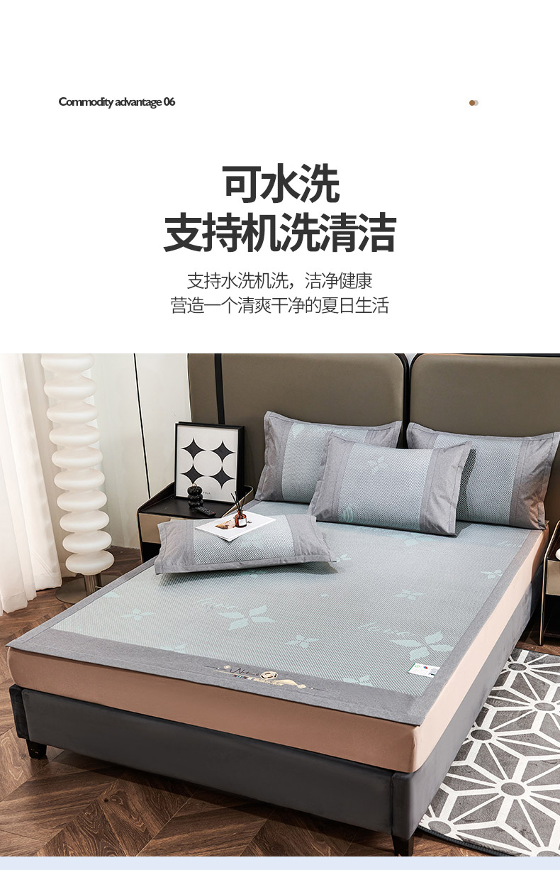商品名称:青雅席业 2025年新款春夏3D复合冰藤养生席 四叶草-绿