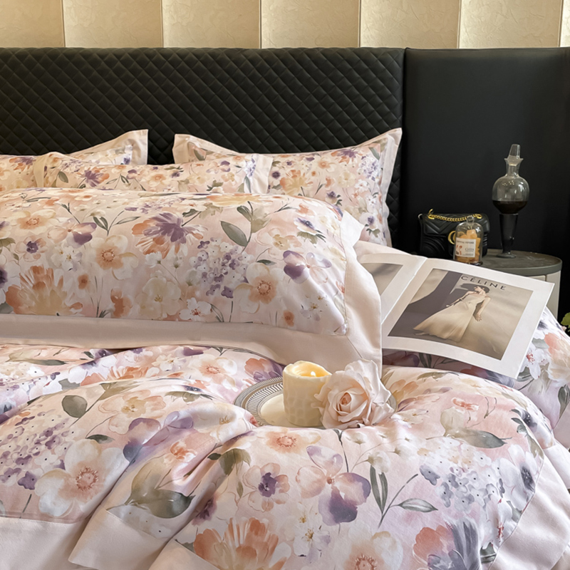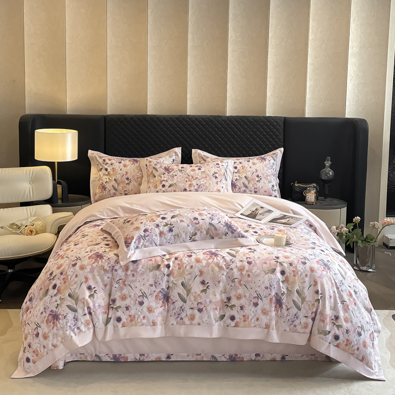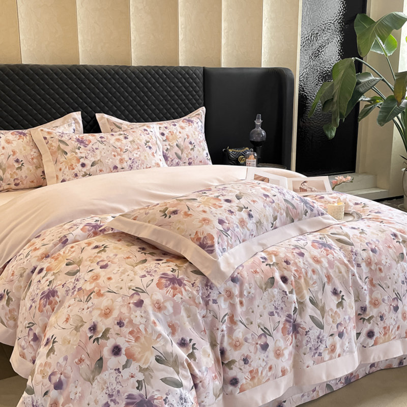 栩裕纺织 2025新款雪芙棉超柔天丝棉磨毛四件套 菲青-粉紫