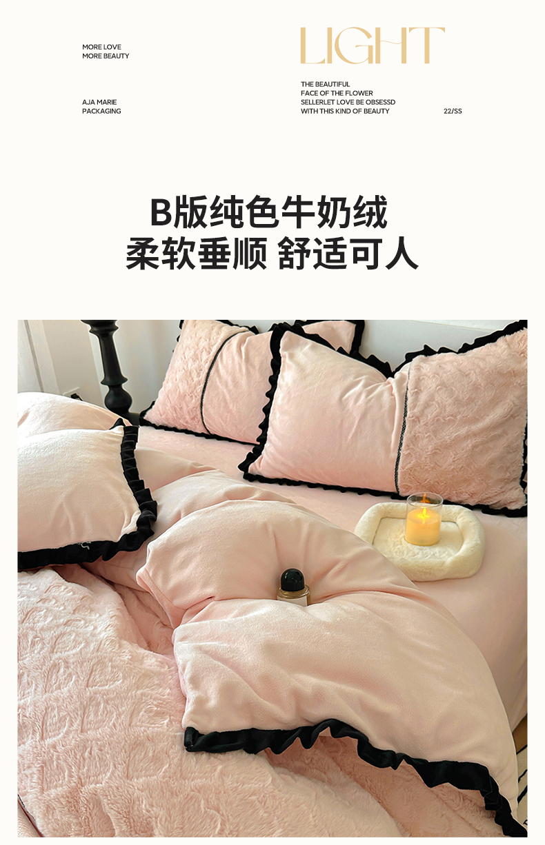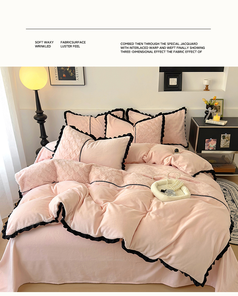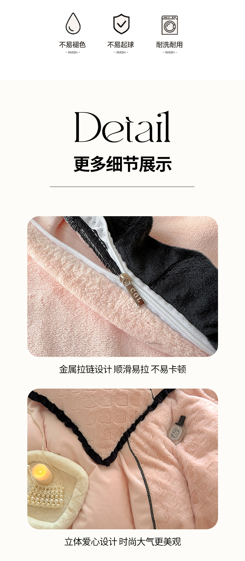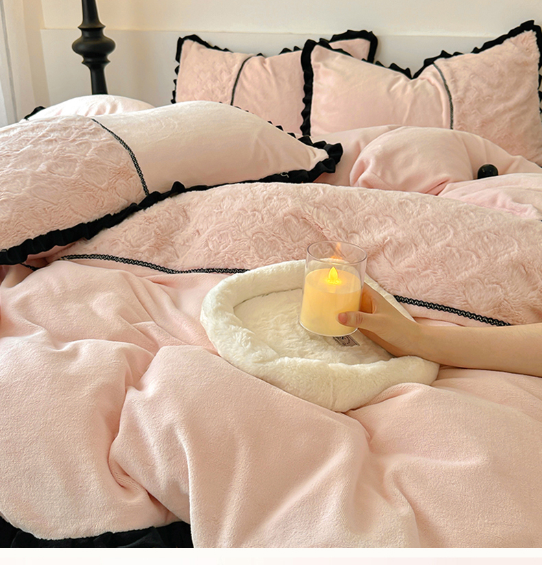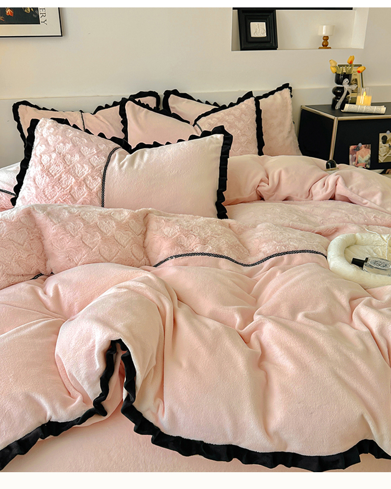 商品名称:春光里 2024新款立体爱心兔毛拼接款牛奶绒四件套 香槟粉