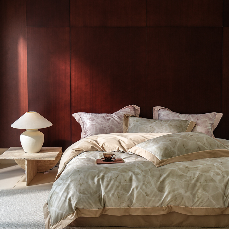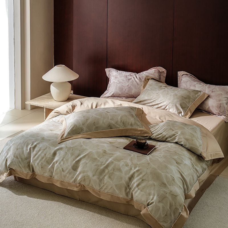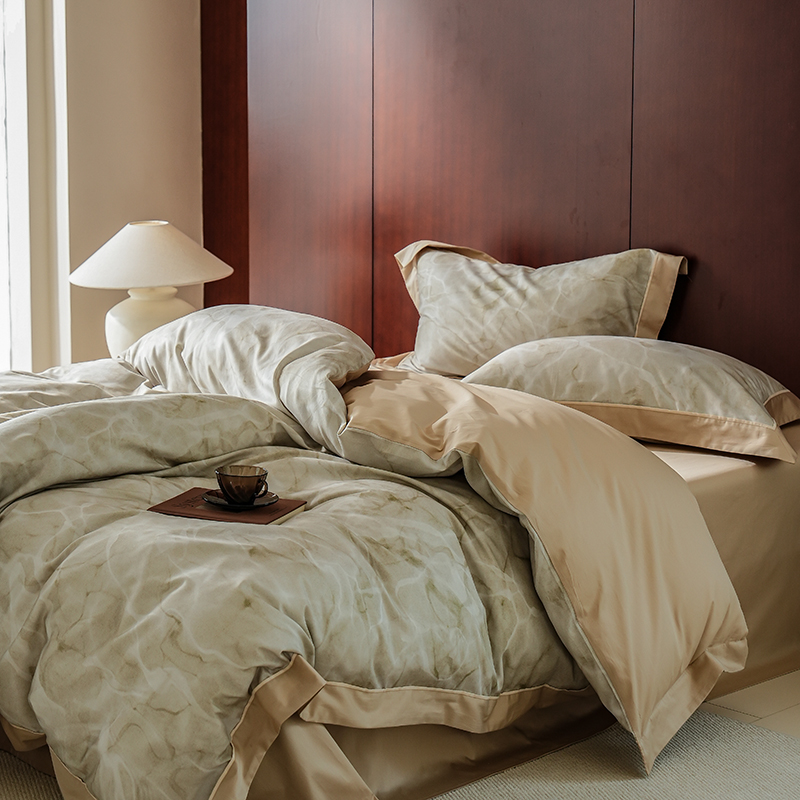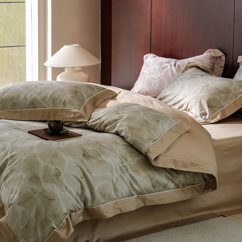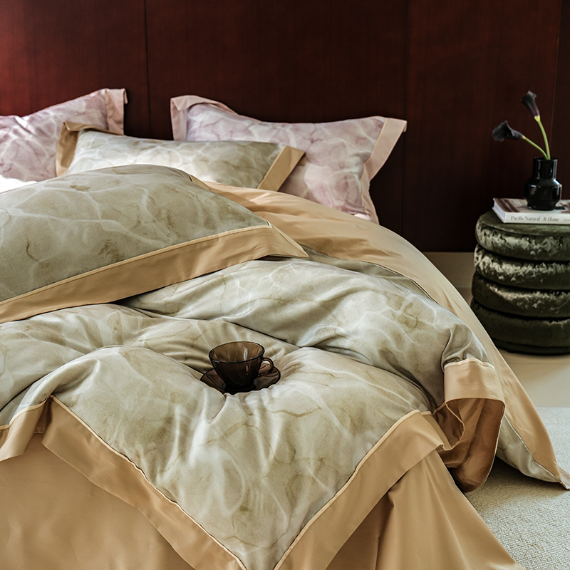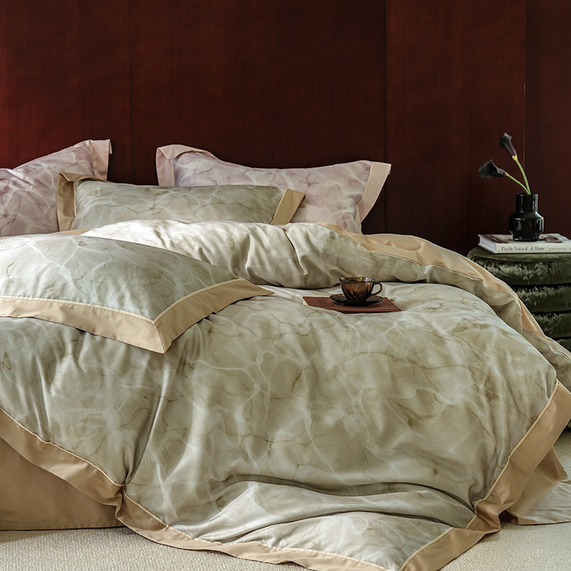 商品名称:2024新款天丝棉磨毛宽边+嵌条印花四件套 岚烟-绿