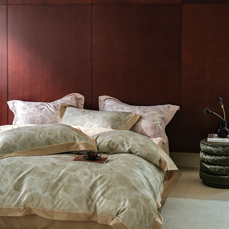 2024新款天丝棉磨毛宽边+嵌条印花四件套 岚烟-绿