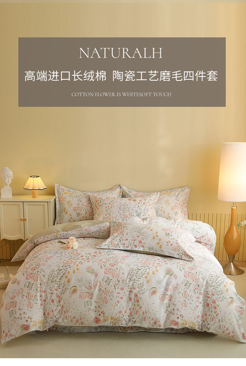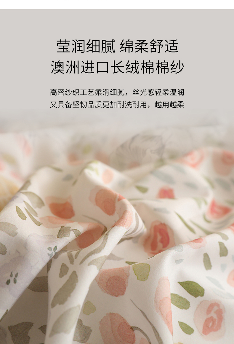 商品名称:巧玲珑 2025新款144*72澳洲棉陶瓷四件套 蔷薇