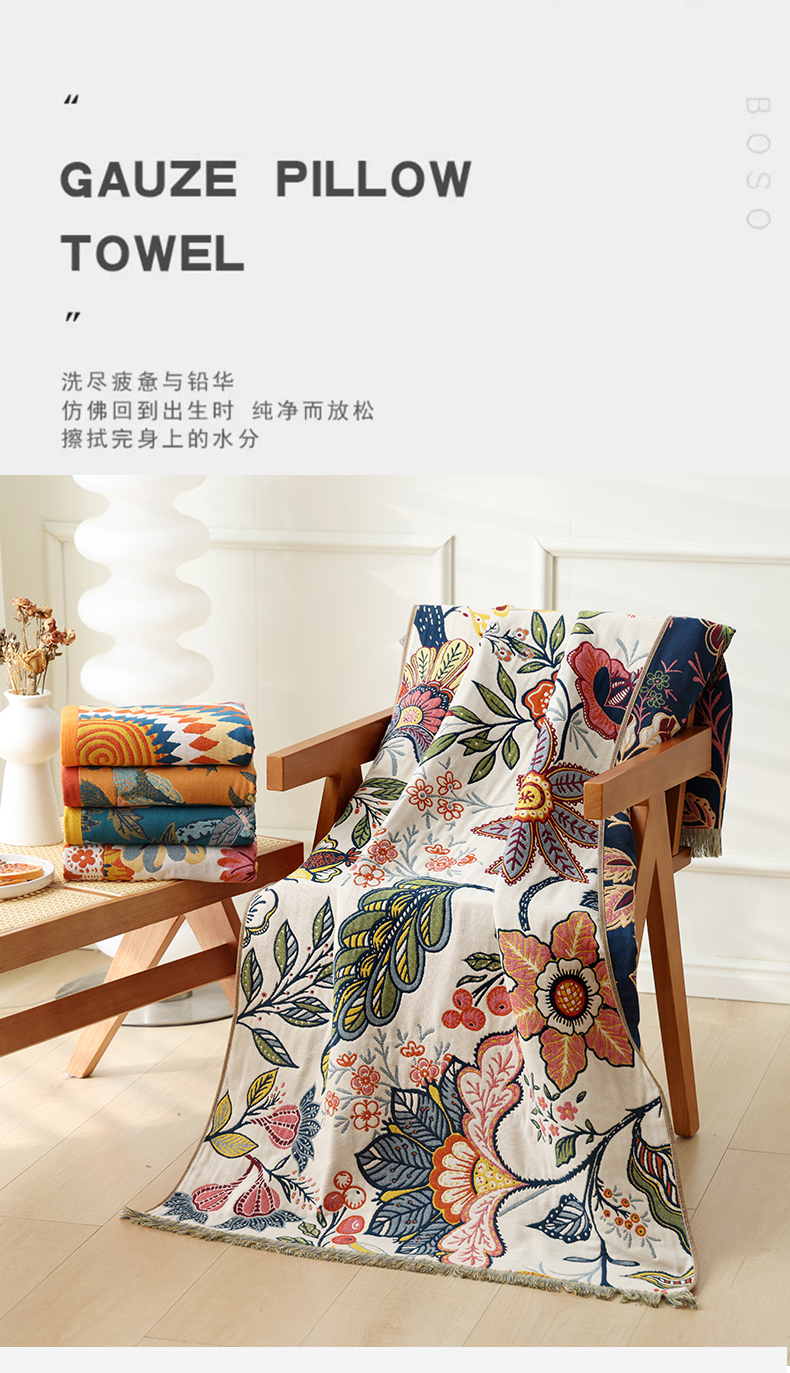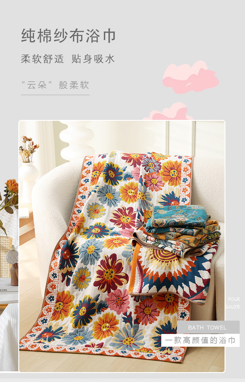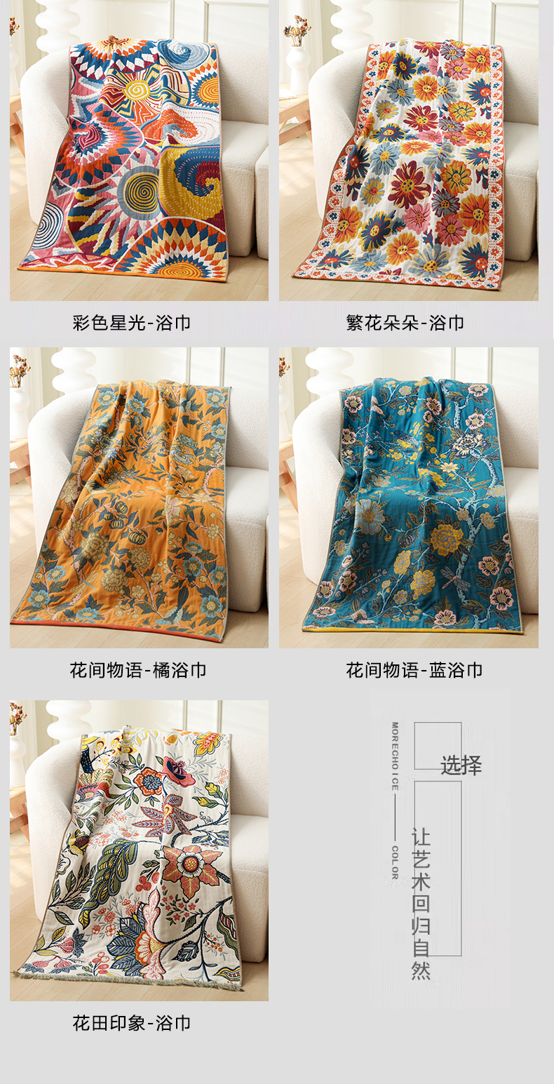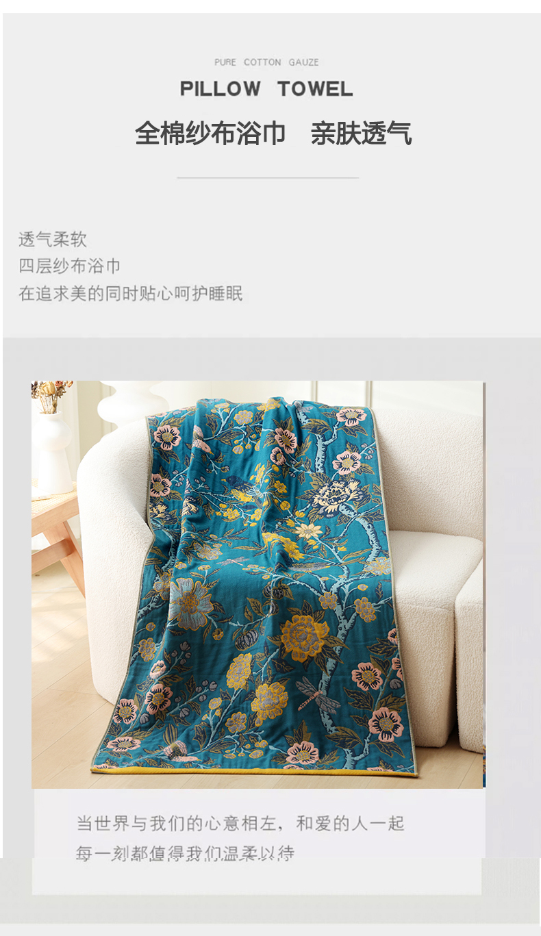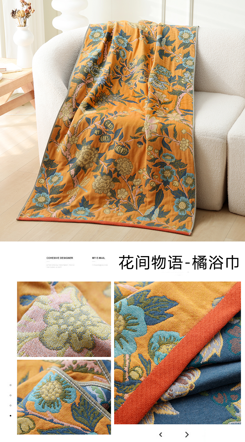 当前位置: 91家纺网 > 商品网购 > 床品套件 > 四件套 > 全棉普通四件套 > 朴尔2025年新品国潮风加大加厚全棉六层纱布浴巾四件套 花间物语橘-浴巾