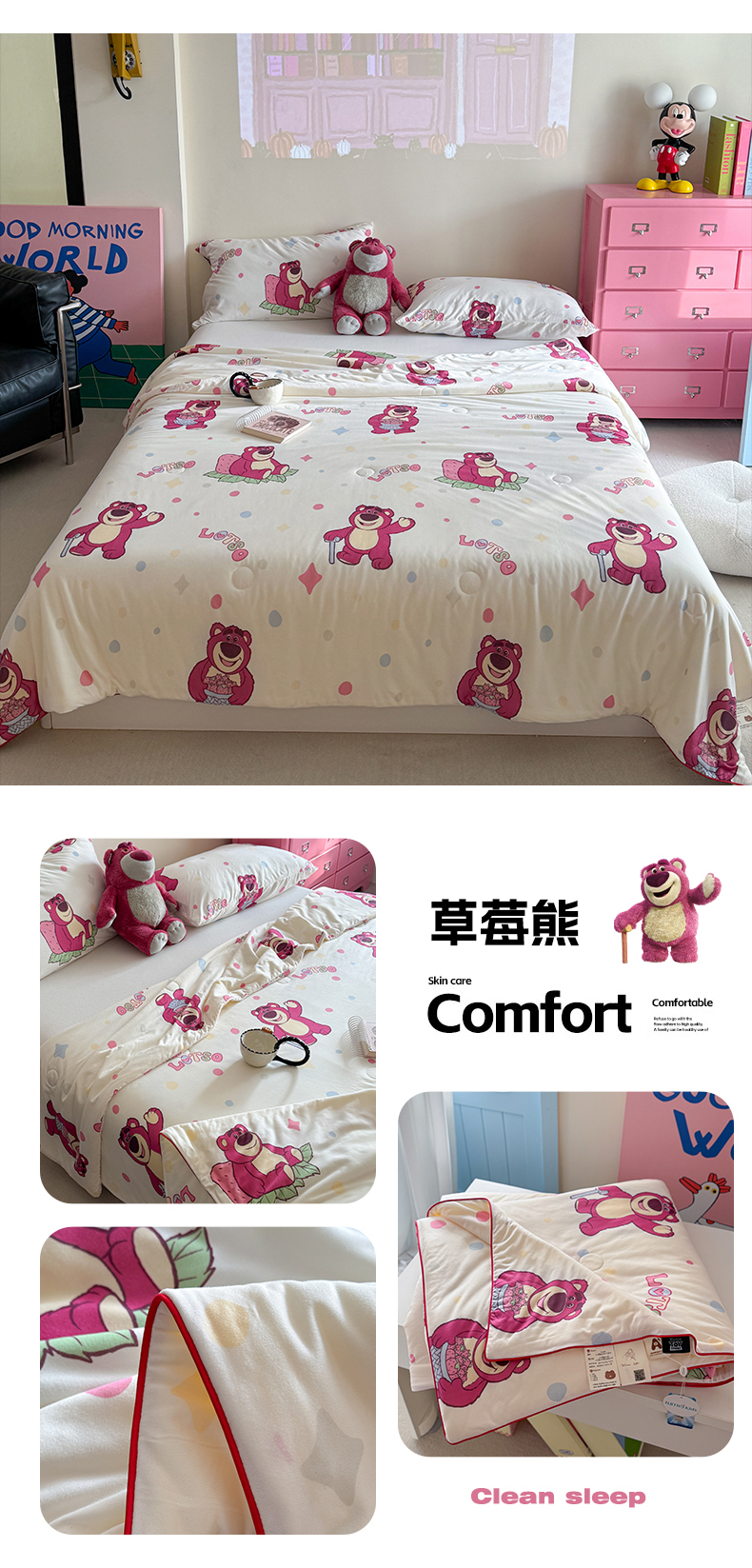 (总)暖生活 2025新款牛奶针织棉夏被-迪士尼系列,草莓熊,迪士尼派对,梦想米奇,米奇印章,妙妙屋,维尼春游