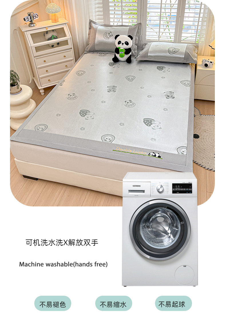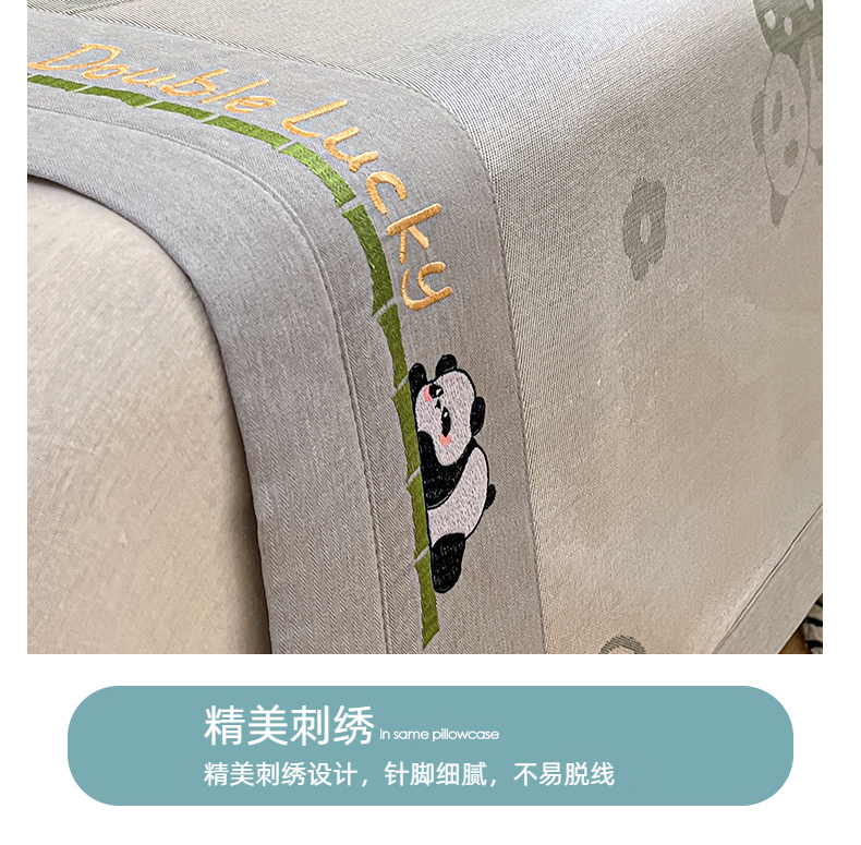 席佬大 2025 新款肌理纹800D卡通草莓熊猫菱形熊猫刺绣床席床笠凉席 草莓熊猫-灰色床席款