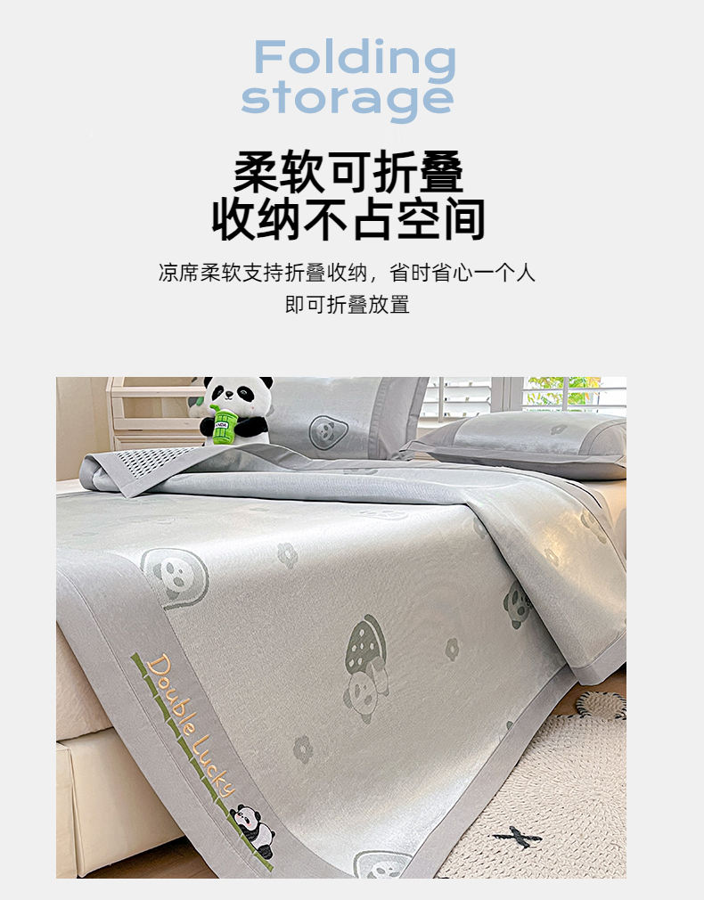 • 91家纺网 家纺一手货源 找家纺 席佬大 2025 新款肌理纹800D卡通草莓熊猫菱形熊猫刺绣床席床笠凉席 草莓熊猫-灰色床席款