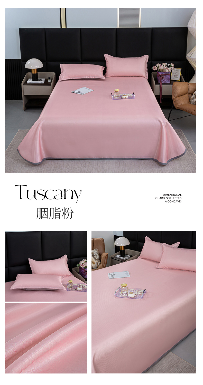 商品名称:念家居 2025新款轻奢可机洗水洗床单款高密大版斜纹冰丝凉席三件套 胭脂粉