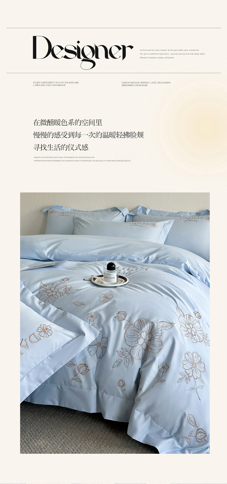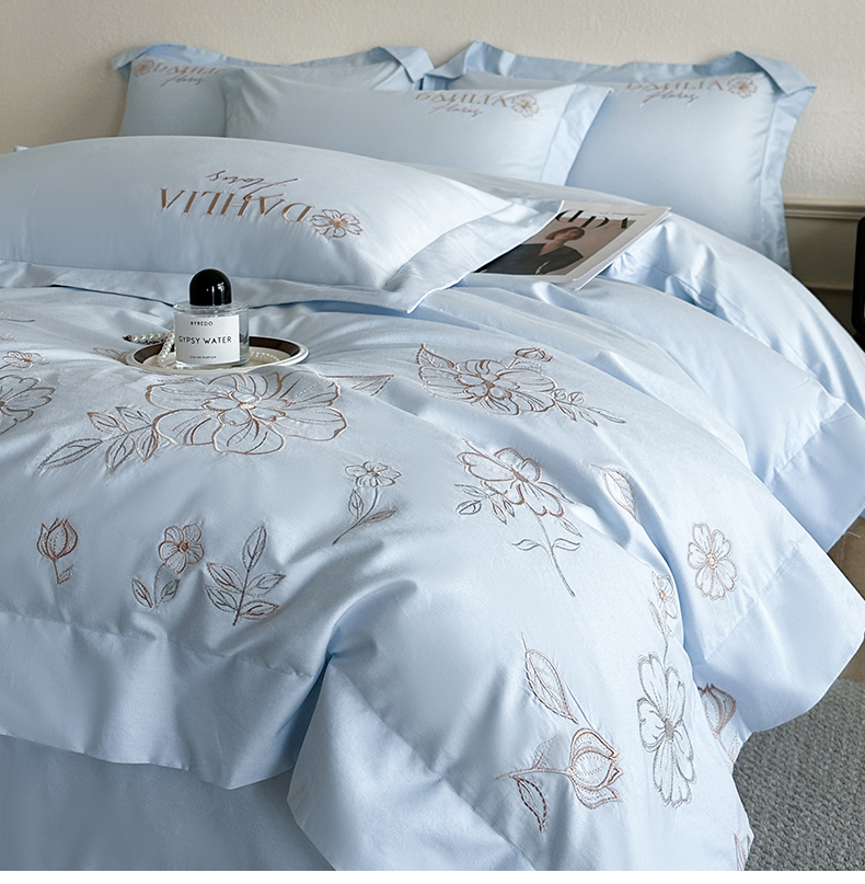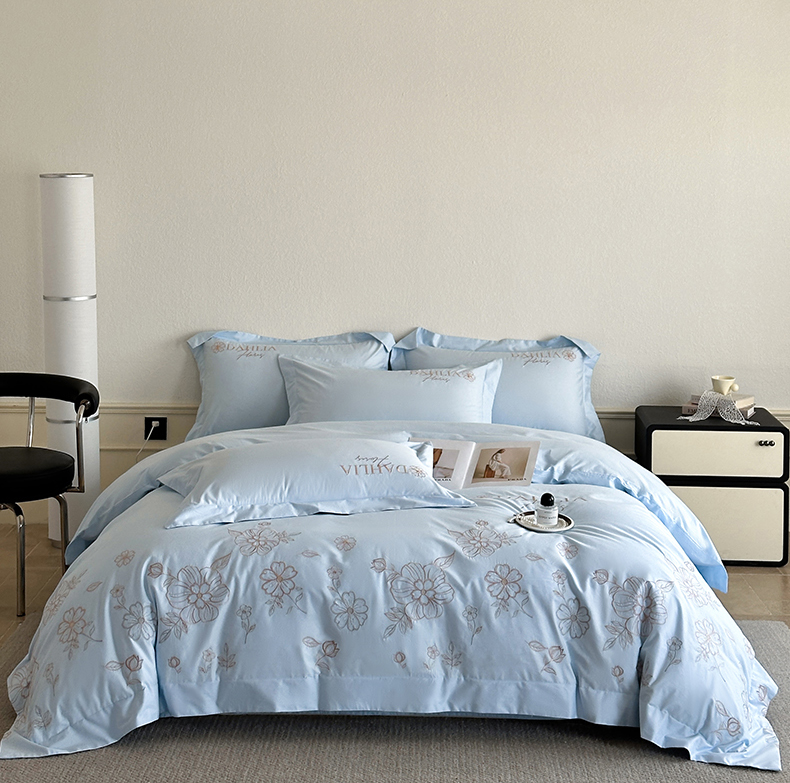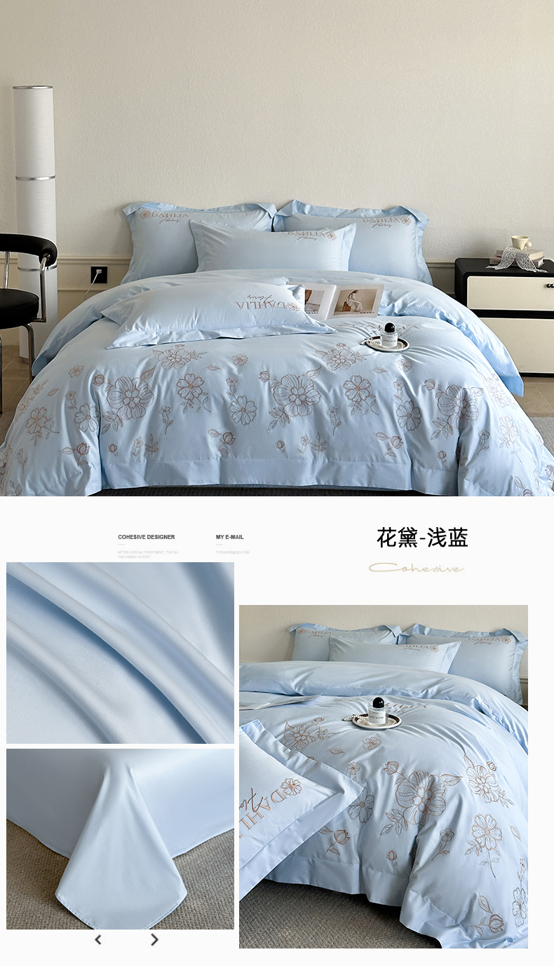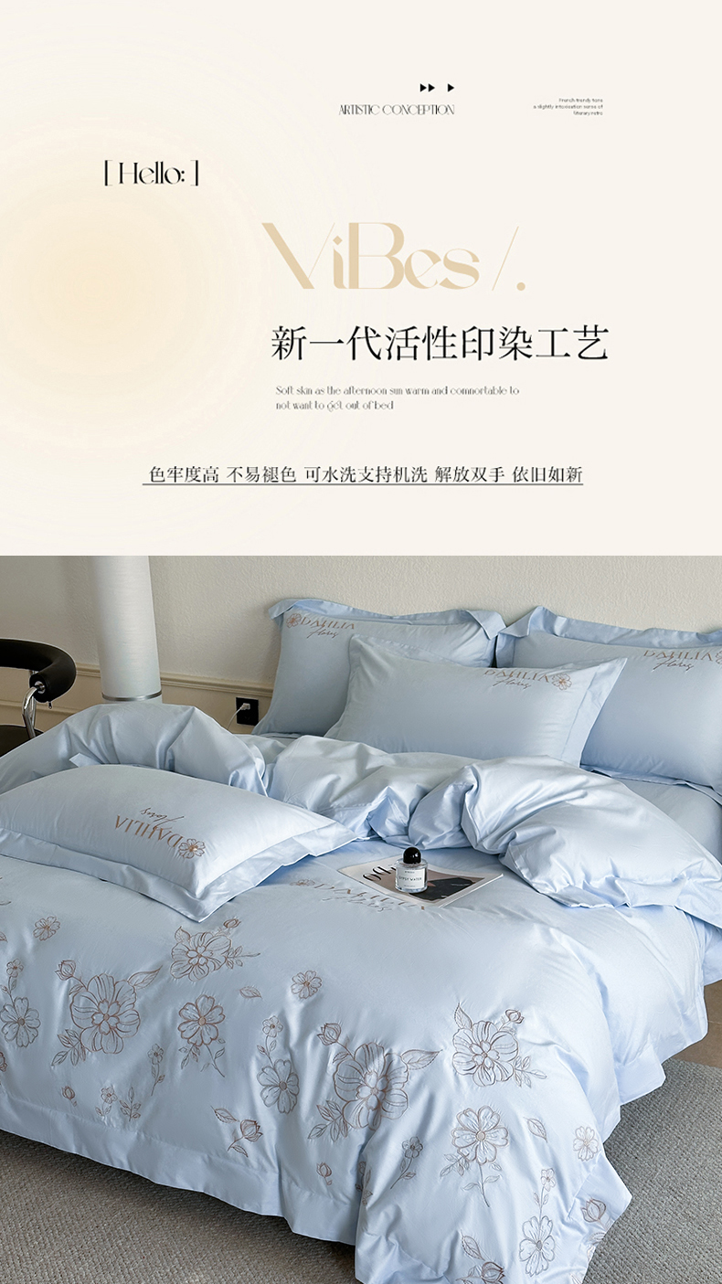 金牛座家纺 2025新款新疆长绒棉全棉刺绣四件套-花黛系列【配高档礼盒】 花黛-浅蓝