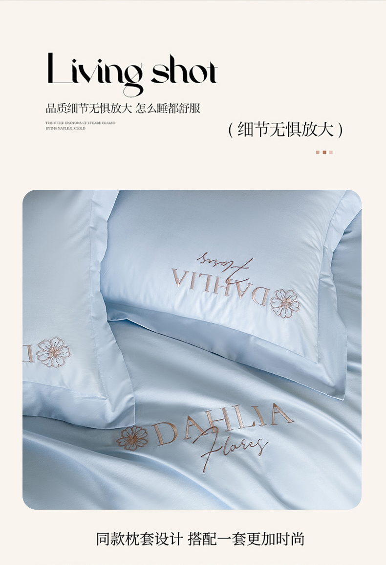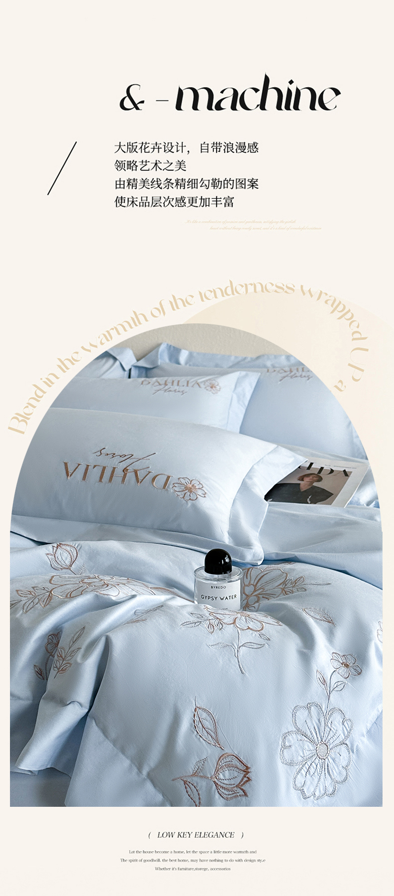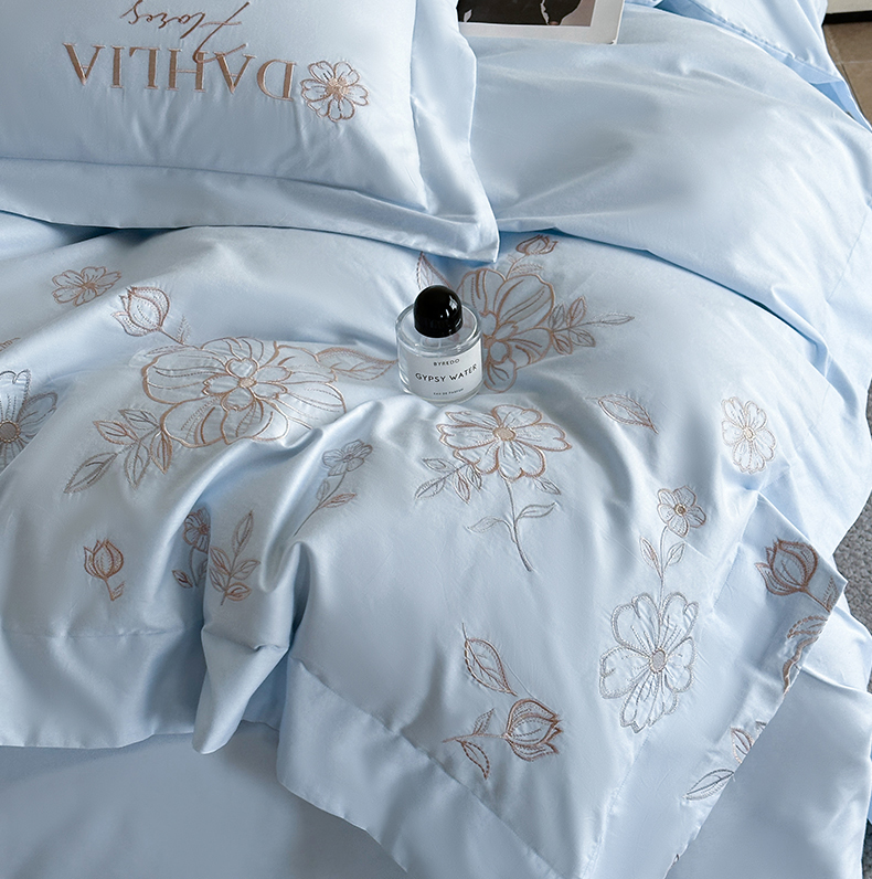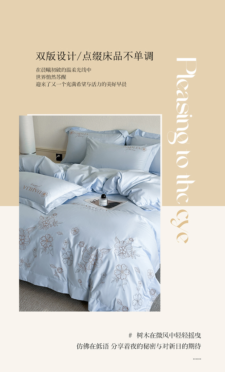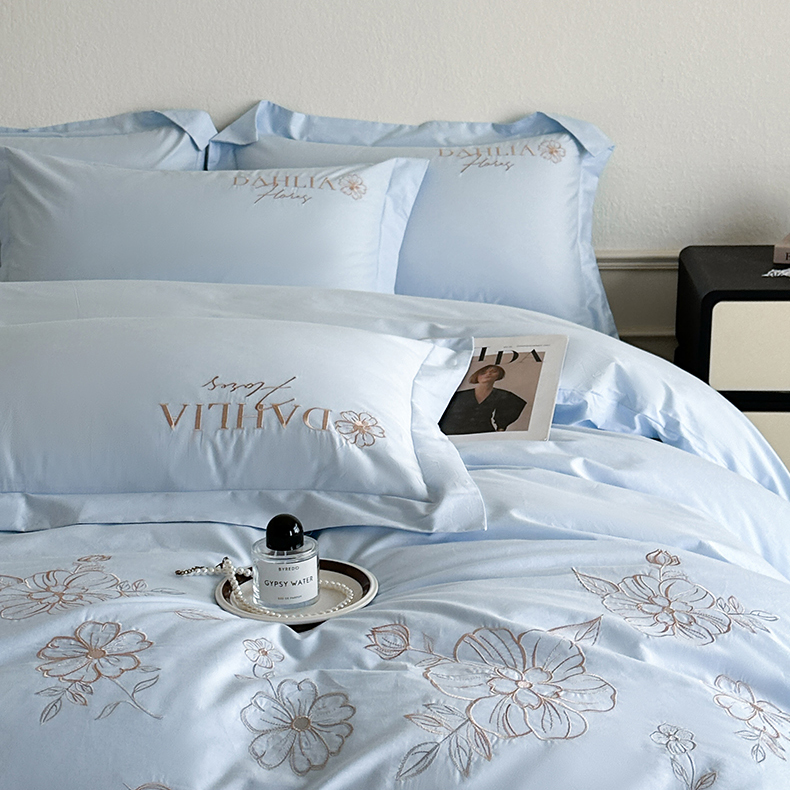 金牛座家纺 2025新款新疆长绒棉全棉刺绣四件套-花黛系列【配高档礼盒】 花黛-浅蓝