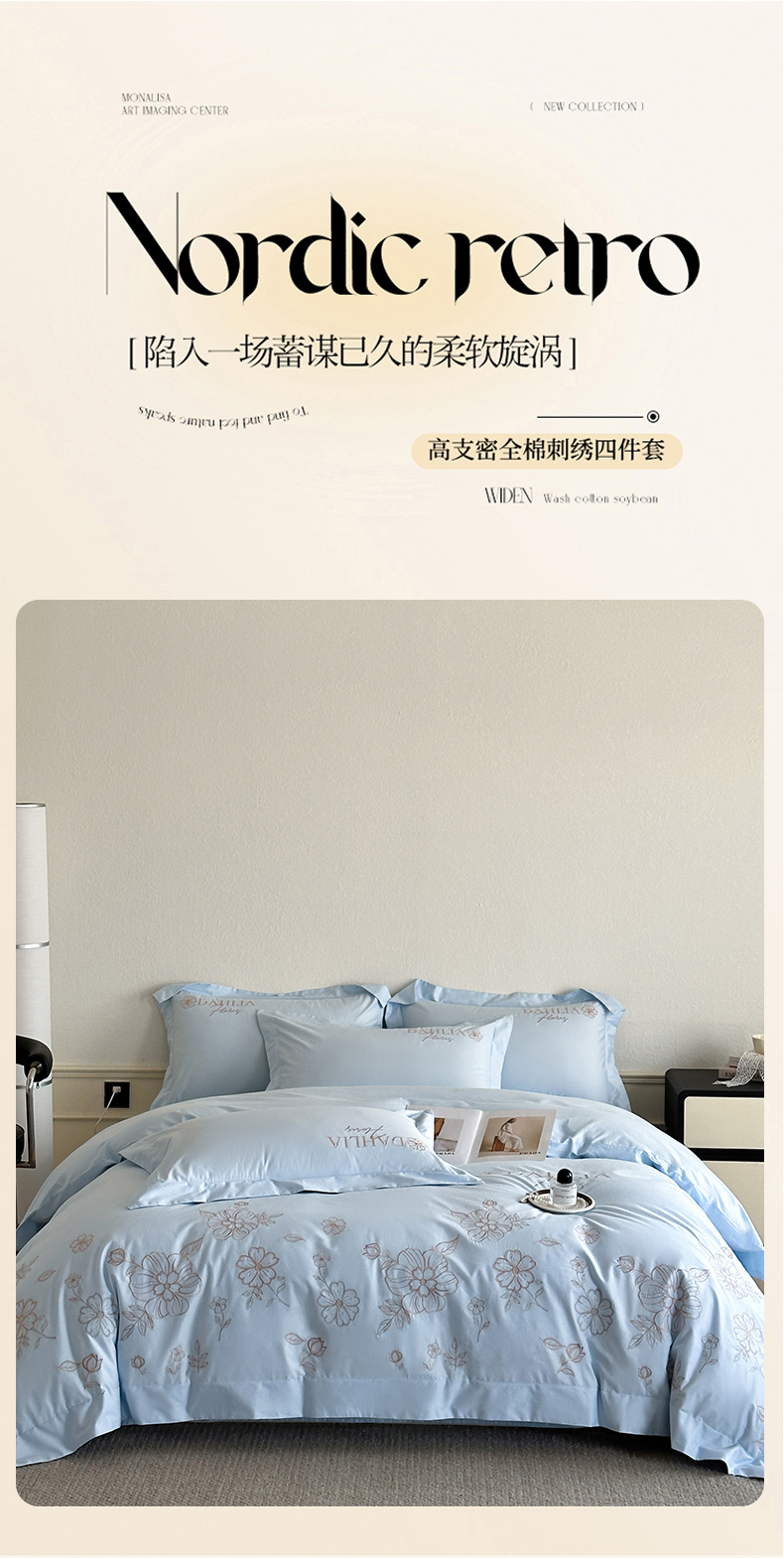 商品名称:金牛座家纺 2025新款新疆长绒棉全棉刺绣四件套-花黛系列【配高档礼盒】 花黛-浅蓝