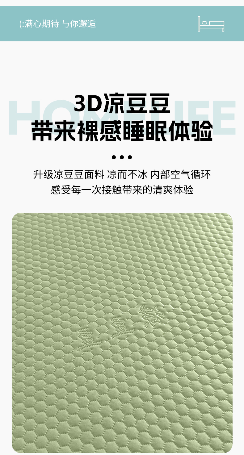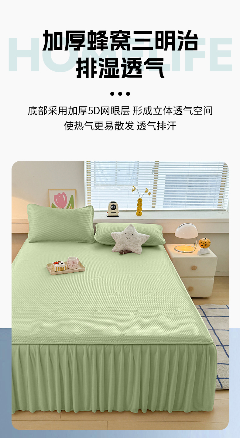 • 91家纺网 家纺一手货源 找家纺 莱轩席业  2025新款3D凉豆豆床裙款 薄荷绿