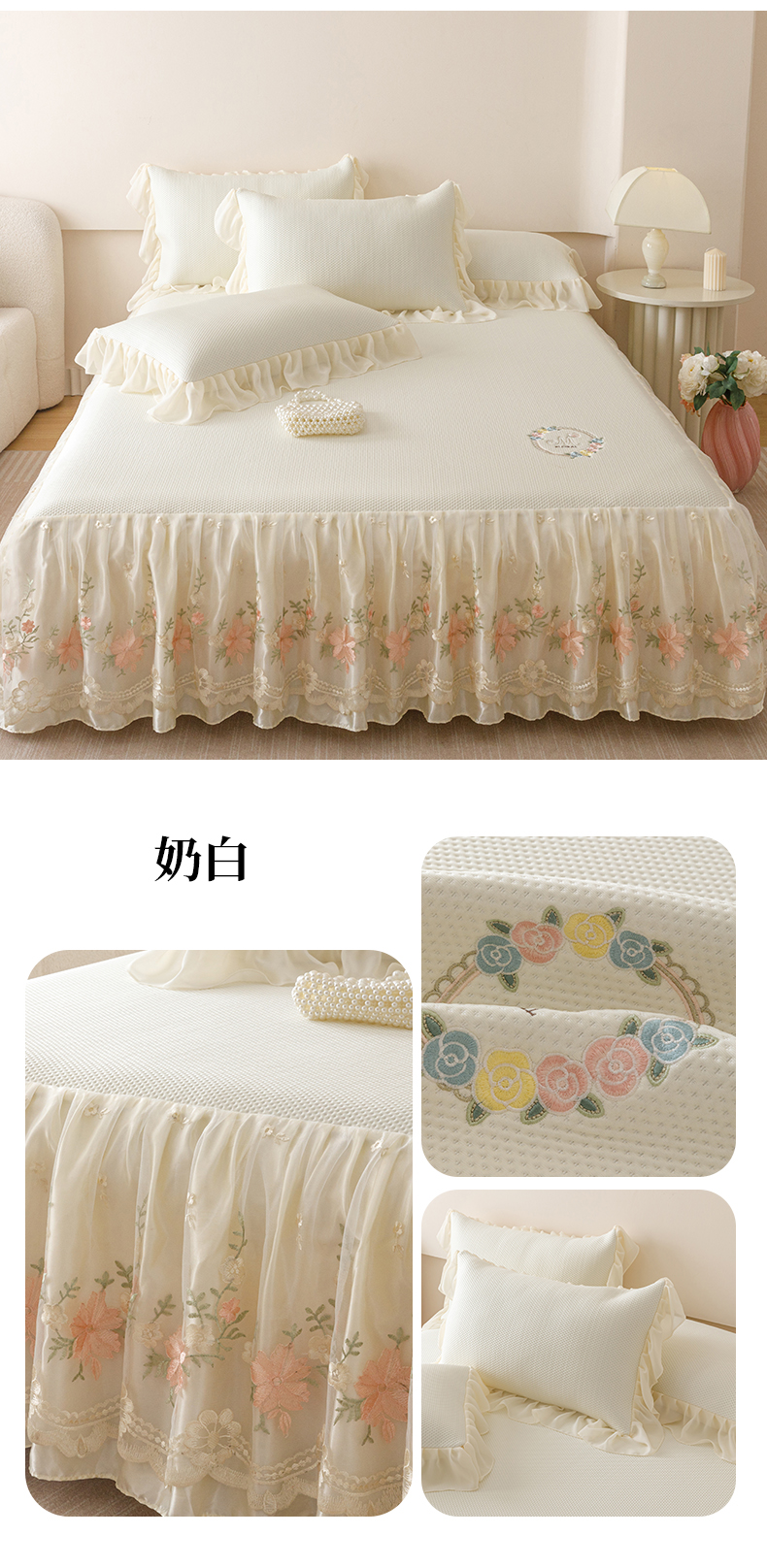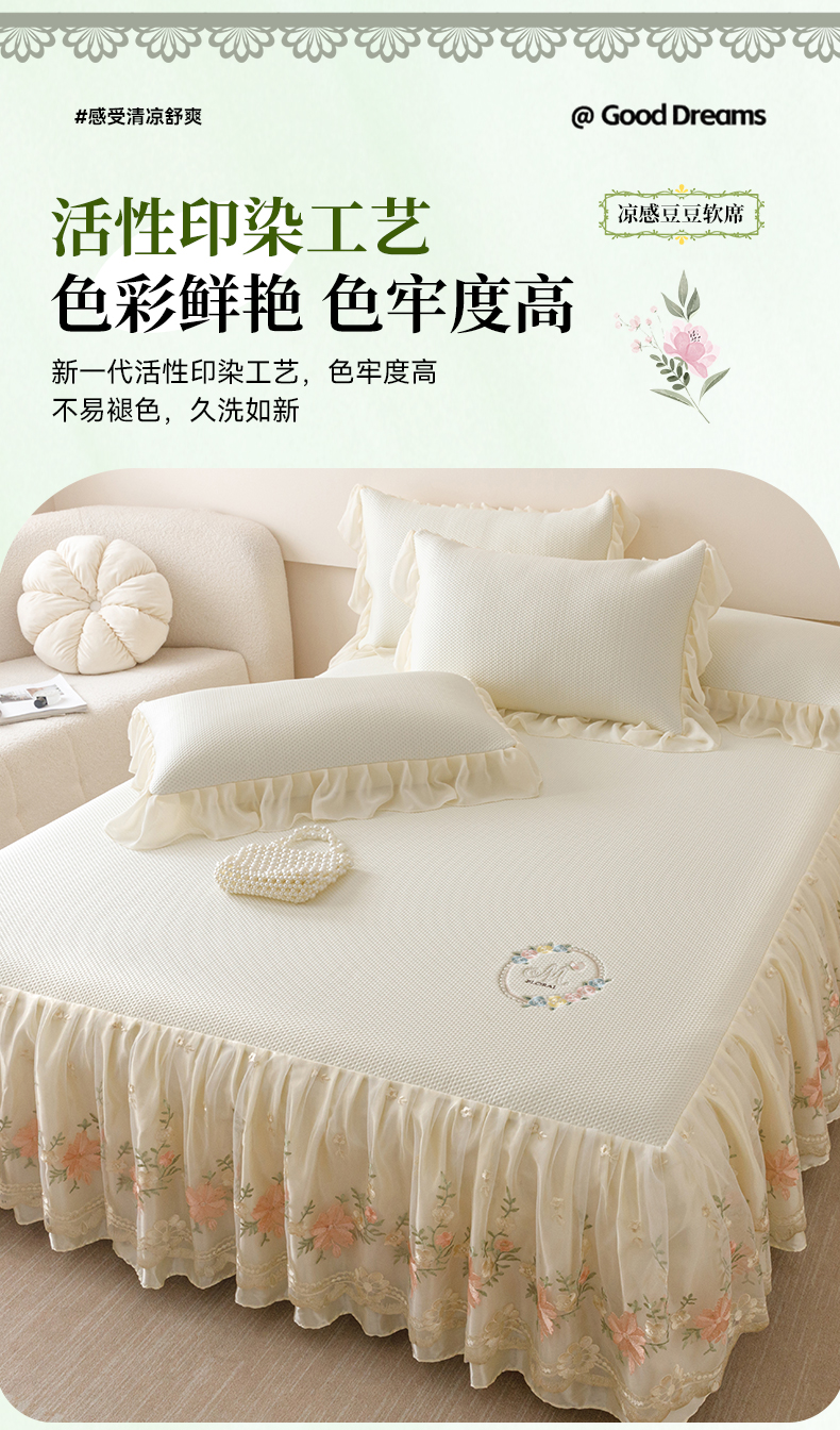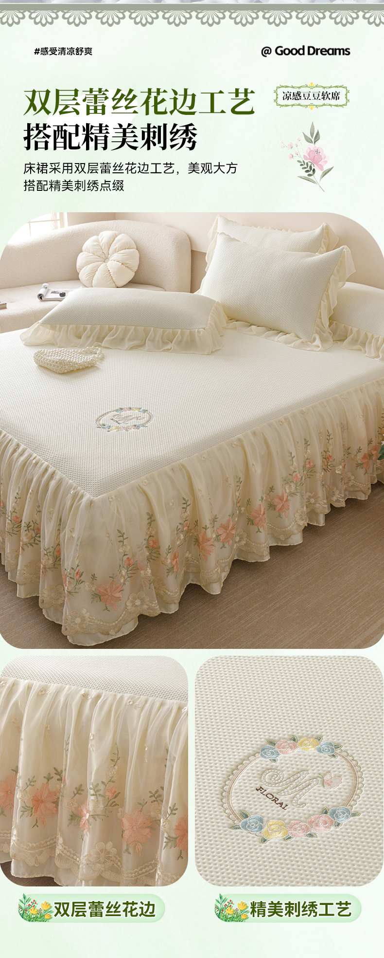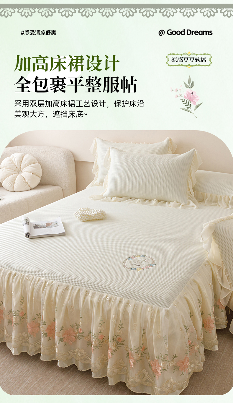 好儿喜家纺2025新款海洋丝凉感豆豆床裙凉席-花蜜 奶白