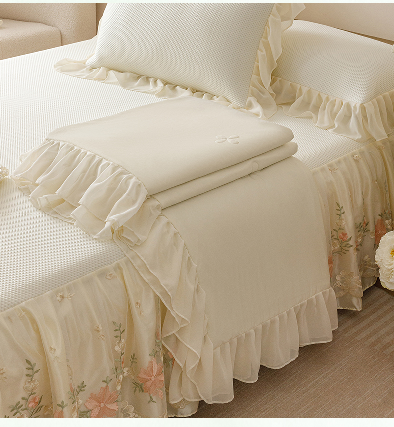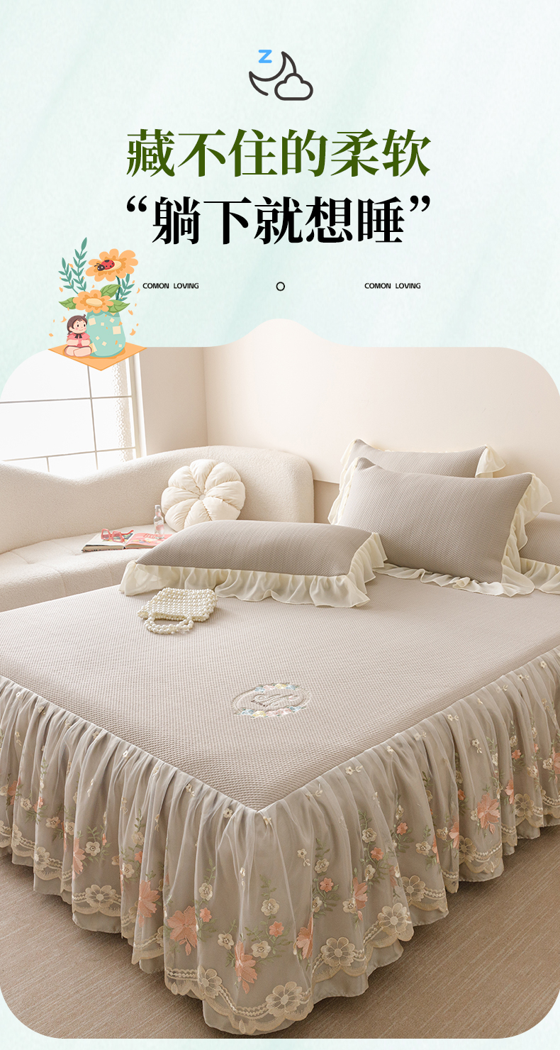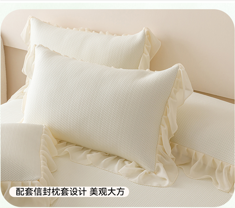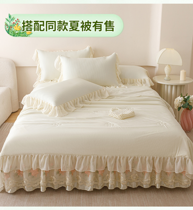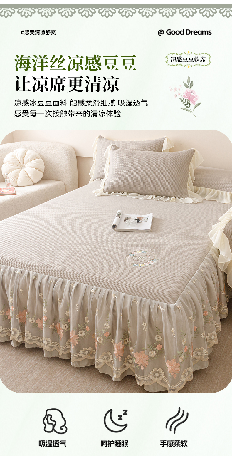 好儿喜家纺2025新款海洋丝凉感豆豆床裙凉席-花蜜 奶白