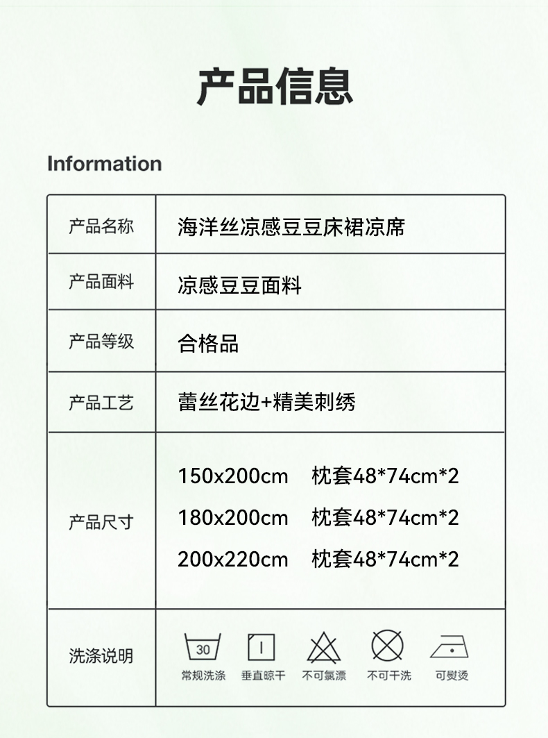 当前位置: 91家纺网 > 商品网购 > 床上用品 > 床裙 > 好儿喜家纺2025新款海洋丝凉感豆豆床裙凉席-花蜜 奶白