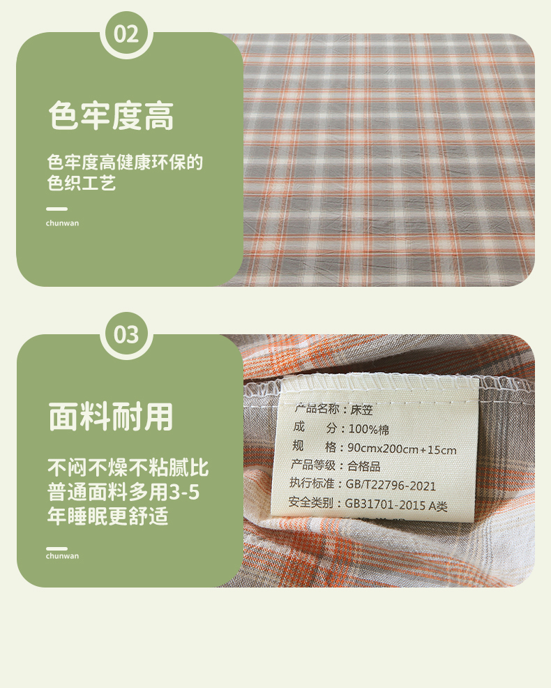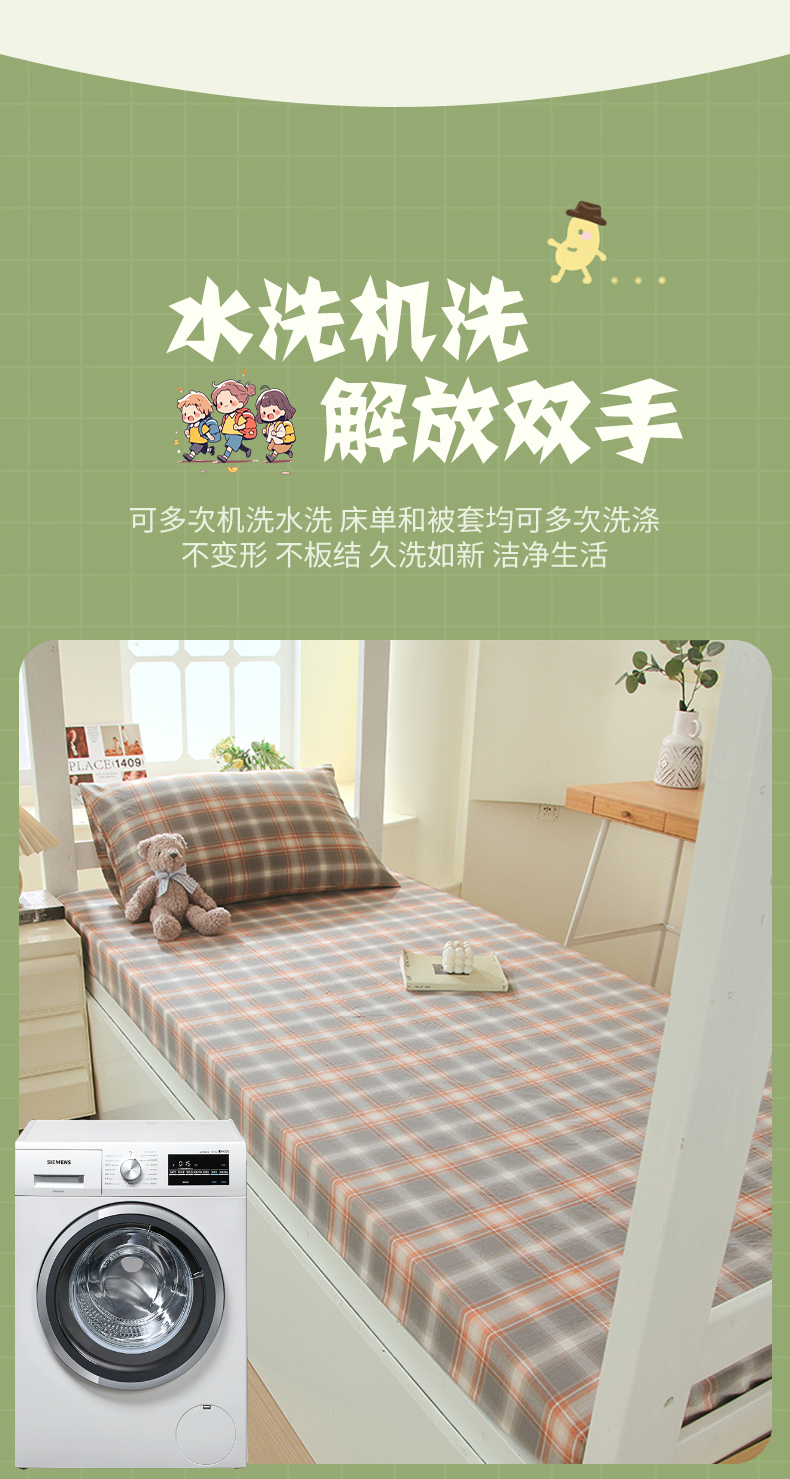 当前位置: 91家纺网 > 商品网购 > 床上用品 > 床笠 > 春皖家纺 2026新款学生季全棉纯棉色织AB版水洗棉单品系列-单床笠 床笠单件 栗木-咖格