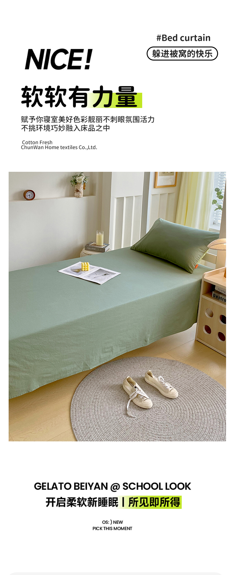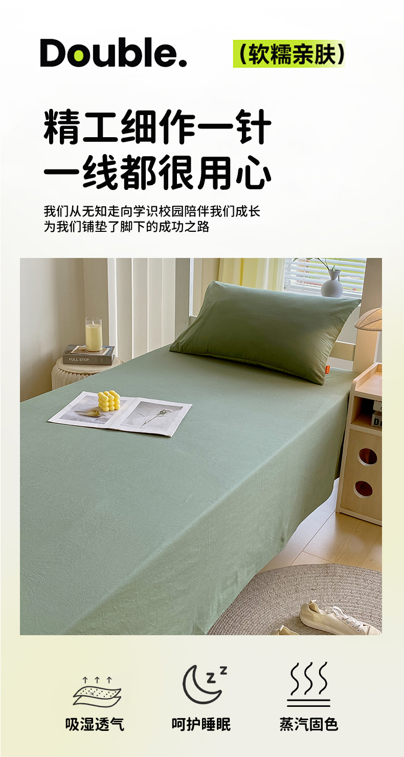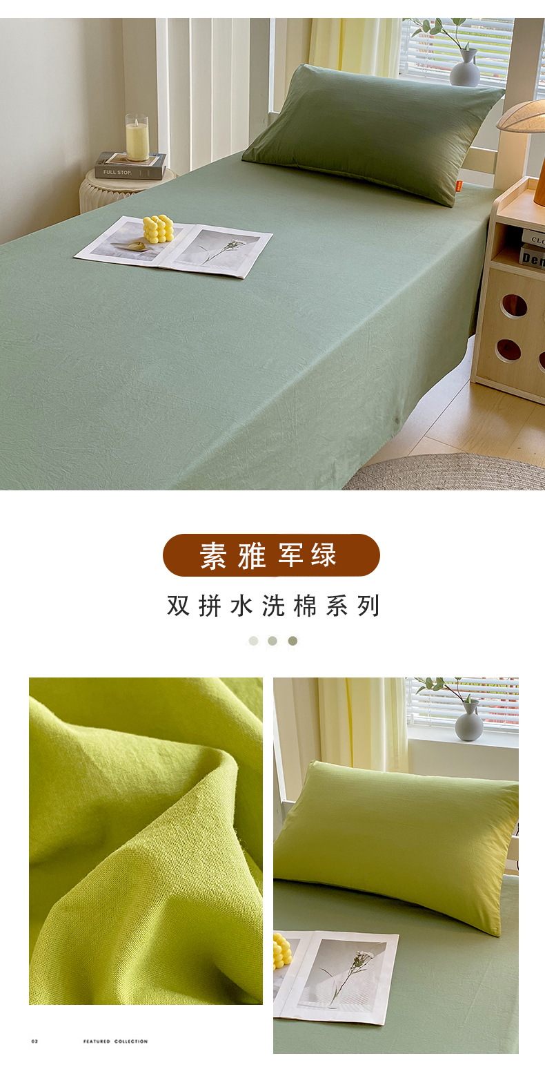 商品名称:春皖家纺 2025新款学生季A类双拼水洗棉小清新单品系列床单单件-单床单 素雅军绿