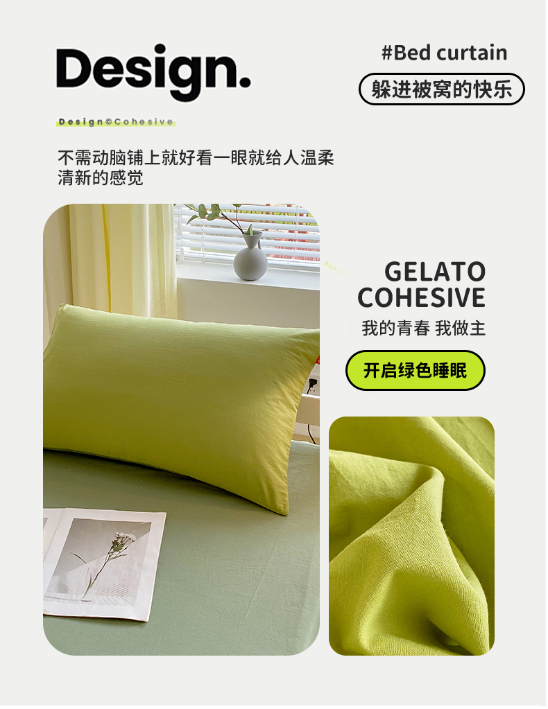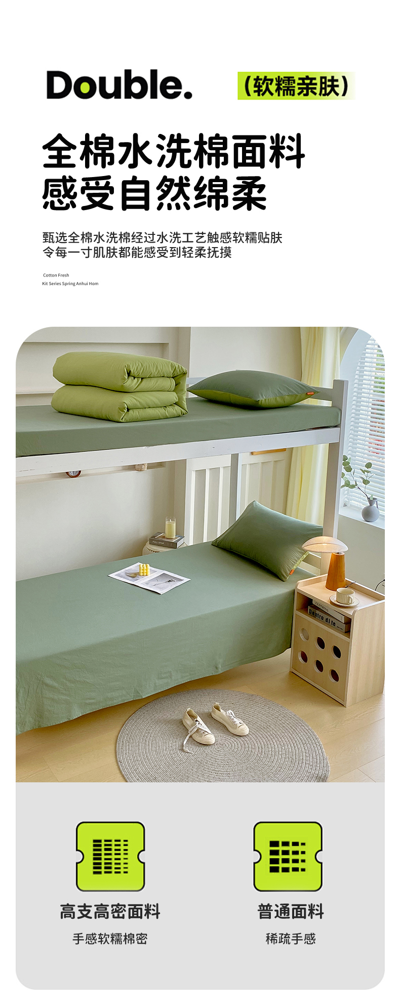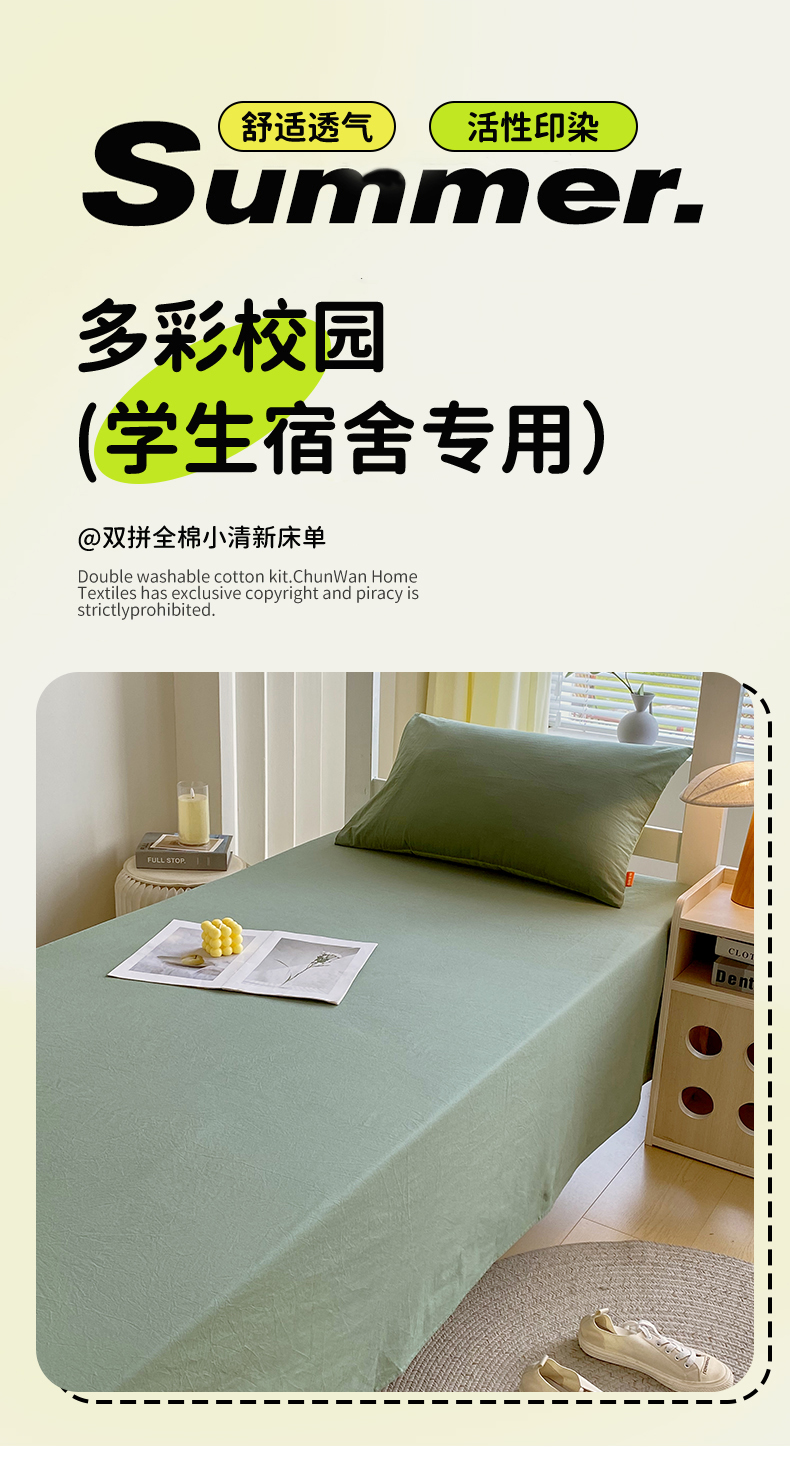 商品名称:春皖家纺 2025新款学生季A类双拼水洗棉小清新单品系列床单单件-单床单 素雅军绿