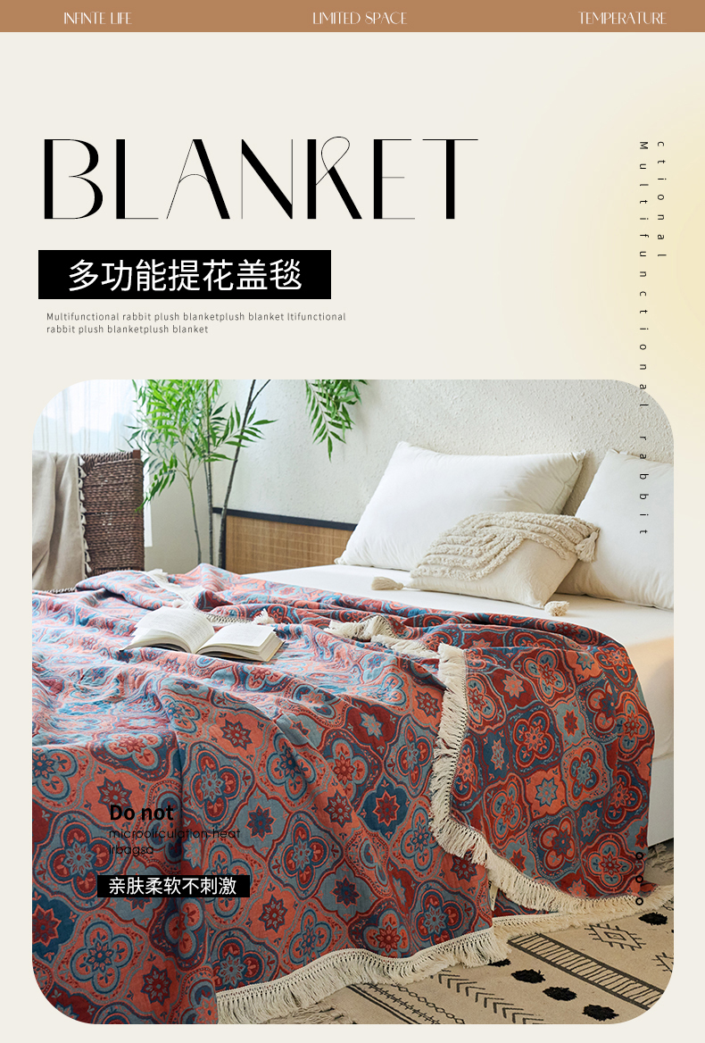 商品名称:春皖家纺 2025新款棉麻大提花三层纱多功能盖毯毯子 叠拍