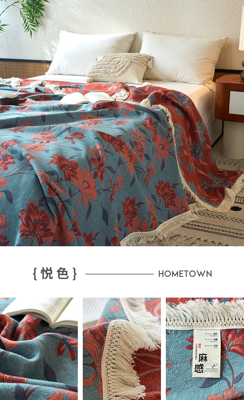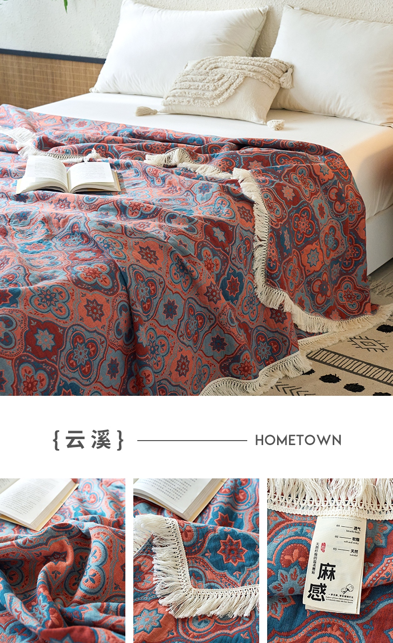 春皖家纺 2025新款棉麻大提花三层纱多功能盖毯毯子 叠拍